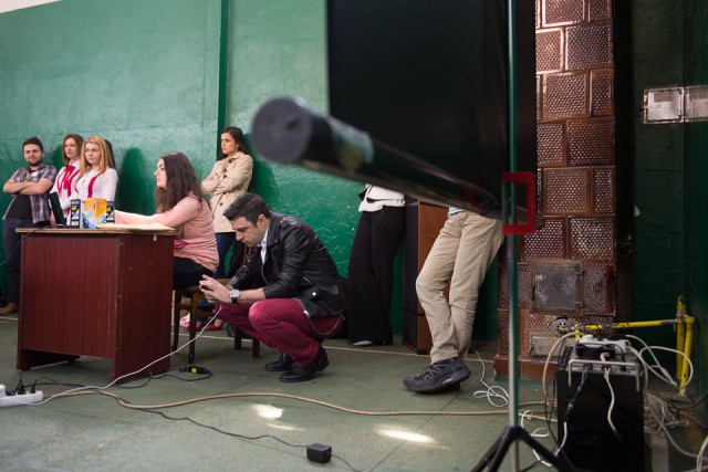 Ajunși în Casa de Cultură am stat într-o cameră din culise cât până la începerea concertului, timp de care am profitat cu toții și pentru încărcarea telefoanelor. Dar și pentru alte fotografii. 🙂