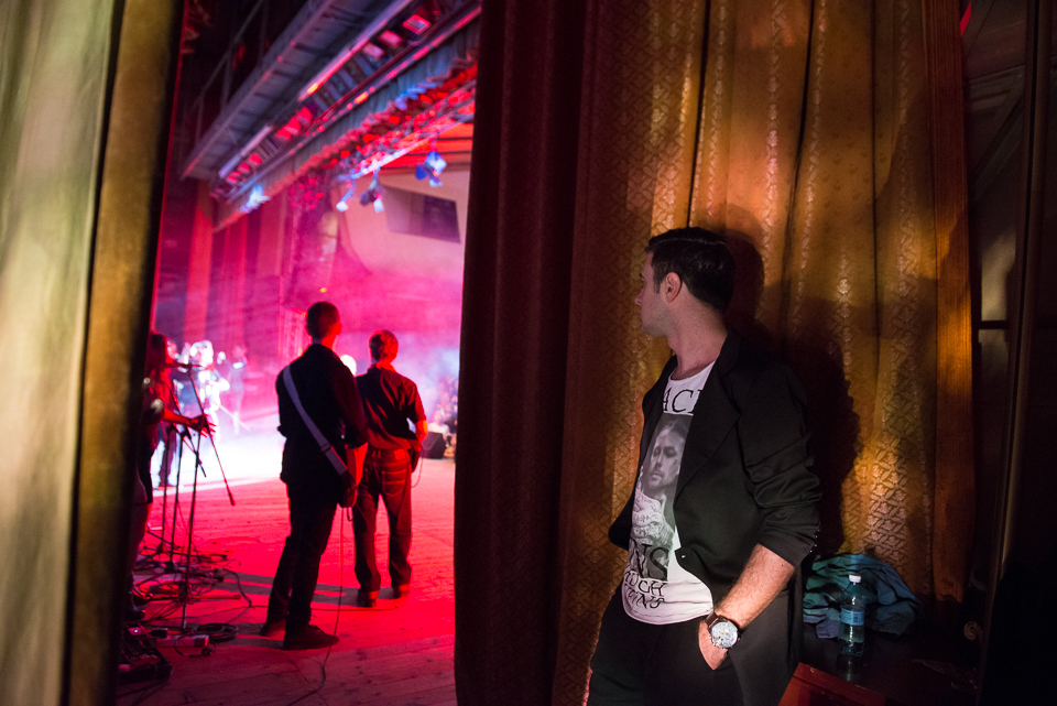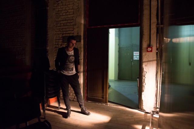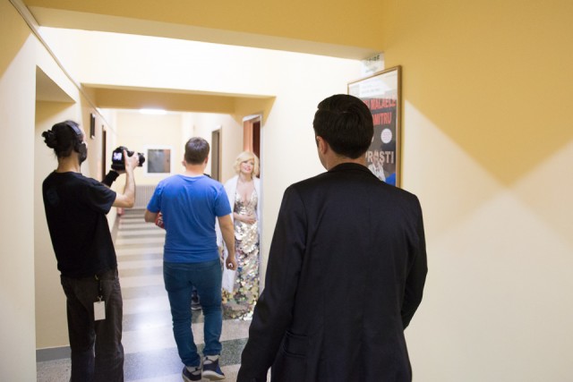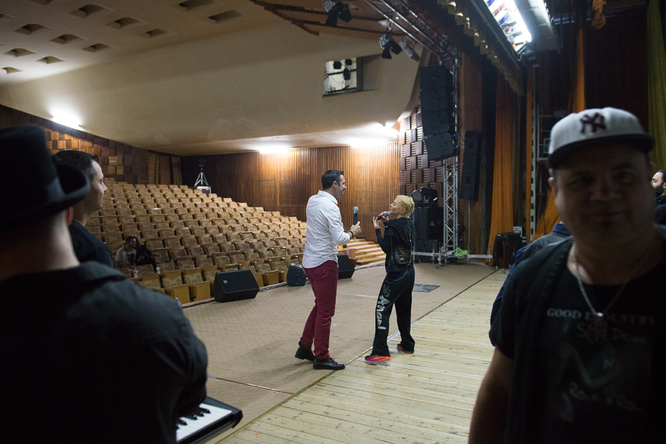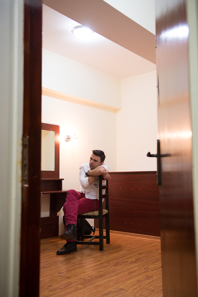 Imediat după ce ma făcut fotografiile acestea am ieșit pe hol să cunosc locul și să-mi fac o idee pe unde să mai fotografiez. Timp în care-l văd pe Cornel că aleargă spre scenă și nu știam de ce. Erau repetițiile dinaintea concertului și a intrat pe scenă eeexact când începea partea lui din melodia „Nu știu cine ești”. Perfect timing!