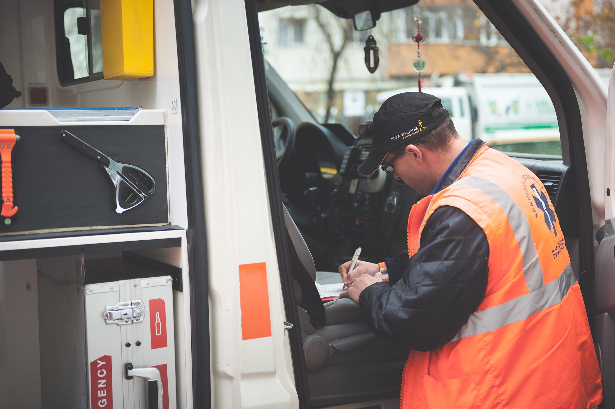 Am pornit undeva spre sectorul 4. Era o oră destul de aglomerată și vedeam cum tot mai mulți șoferi uită că au oglinzi la mașini. Pur și simplu tăiau calea ambulanței sau nu se dădeau la o parte decât după câteva secunde bune, timp prețios pentru fiecare pacient, indiferent de urgență.