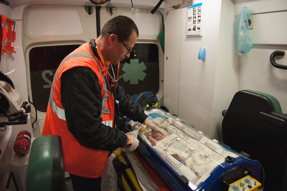 Pentru asta a fost nevoie ca mai întâi să luăm incubatorul de la stația centrală de ambulanțe de pe strada Mihai Eminescu. L-am luat, iar apoi am mers să luăm copilul.