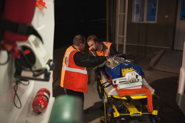 La lumina unei lanterne aduse de ambulanțierul Florin echipajul i-a acordat primul ajutor. A urmat urcarea în ambulanță și stabilizarea pentru mersul la spital.