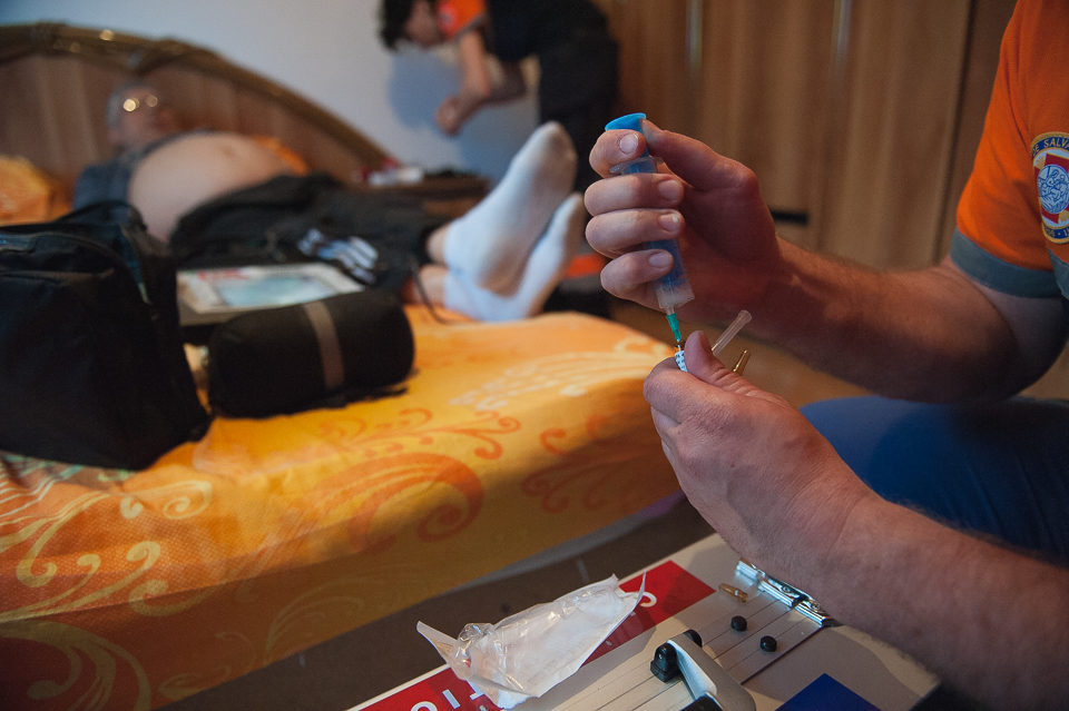 Spre primul caz am pornit la 19:30. Era un domn de 50 de ani cu melenă masivă. Asta înseamnă că defeca sânge, iar sistemul lui digestiv nu funcționa cum trebuie.