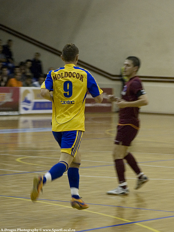 În urma unui fault în minutul 12, un jucător al echipei moldovene primeşte un cartonaş galben, creeându-se tensiune în rândul echipei. 50 secunde mai târziu, în minutul 13, Moldocor Piatra Neamţ marchează primul gol al acesteia. Primind şansa unei lansări de la 7 metri, echipa moldoveană ratează milimetric, nimerind bara.