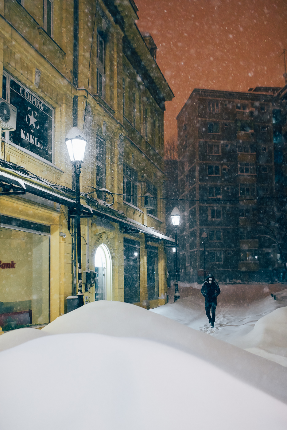Am mers pe ideea unor cadre de ansamblu tocmai ca să arate orașul, în întregul lui, gol, în miez de iarnă. Abordarea de care spui tu am ales-o în această serie de toamnă.