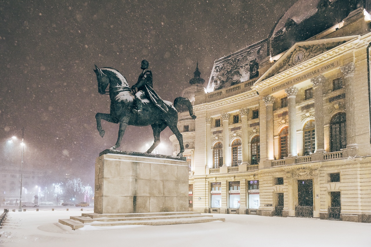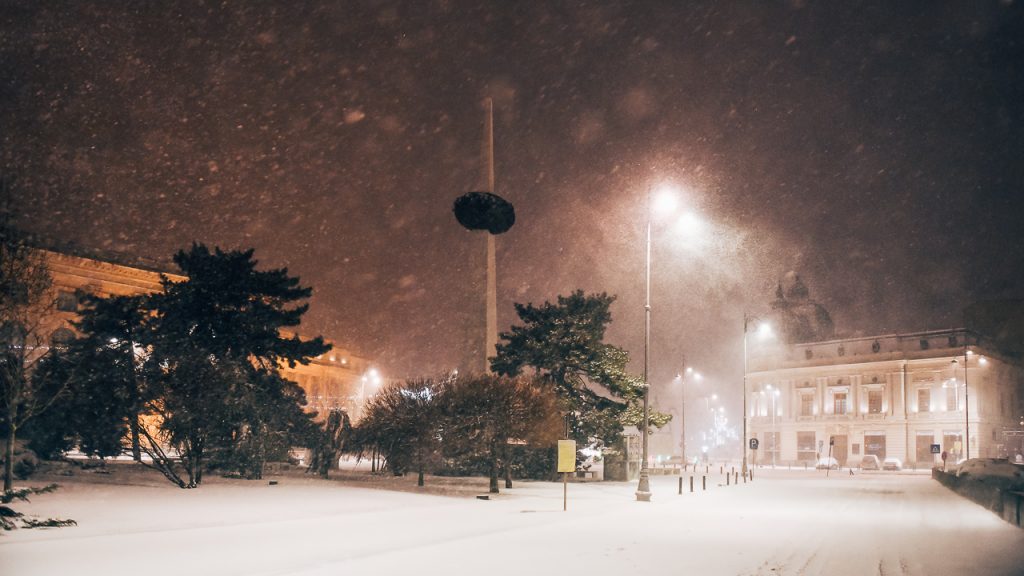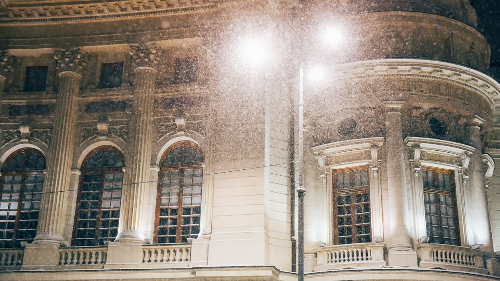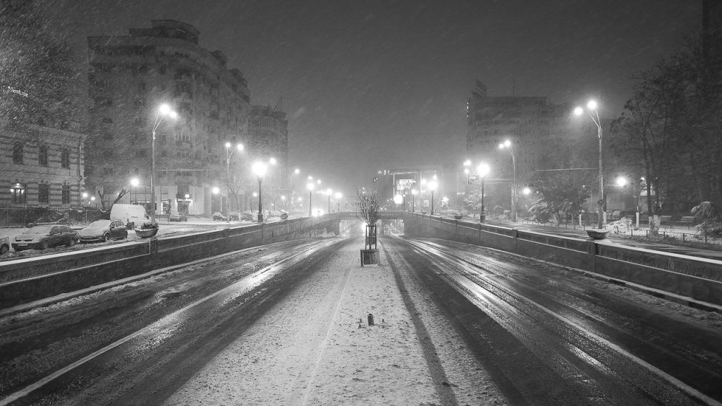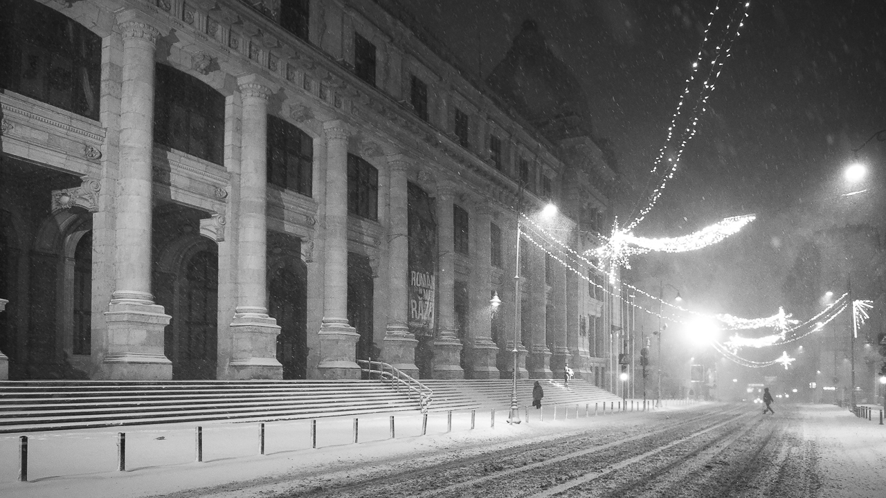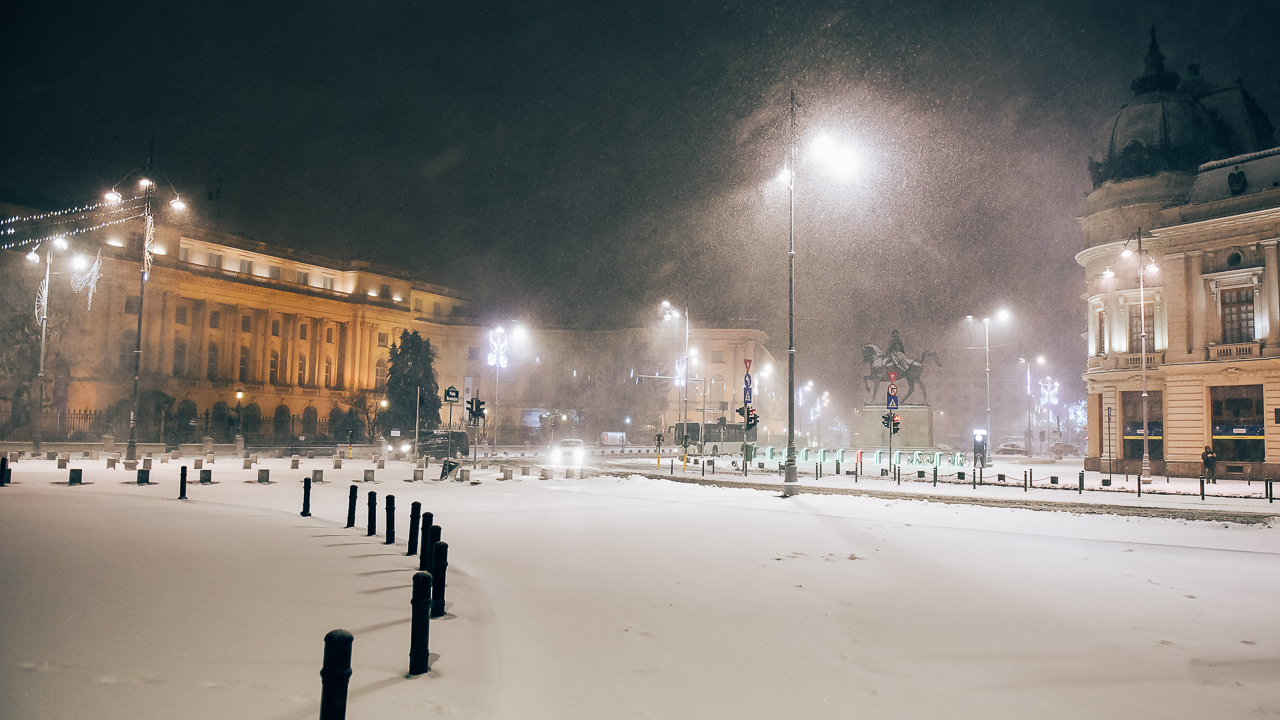 Fotografii cu prima ninsoare din București pe 2017: Imagini dintr-o tură foto făcută de la 4 dimineața, pe 6 ianuarie: Unirii – Universitate – Ateneu – Piața Revoluției – Calea Victoriei – Centrul Vechi.