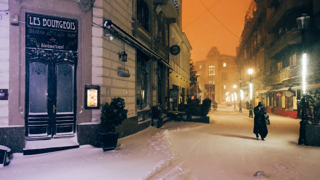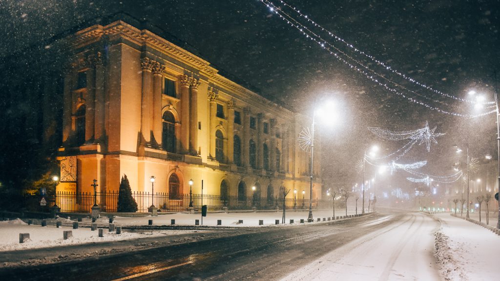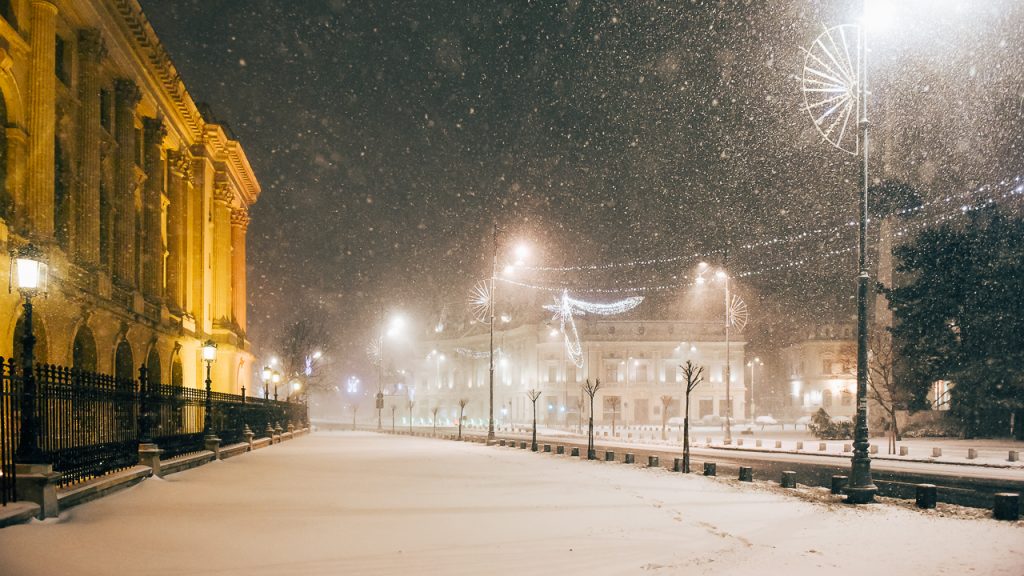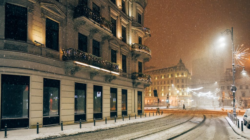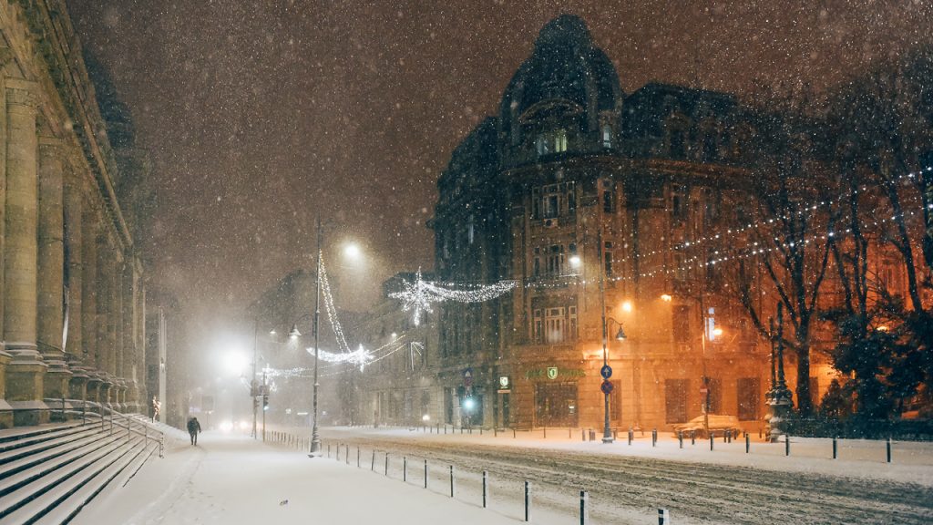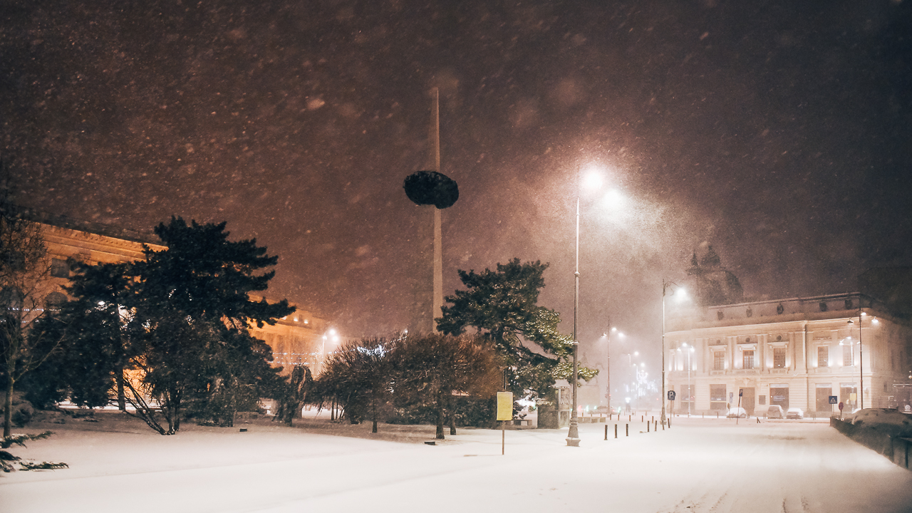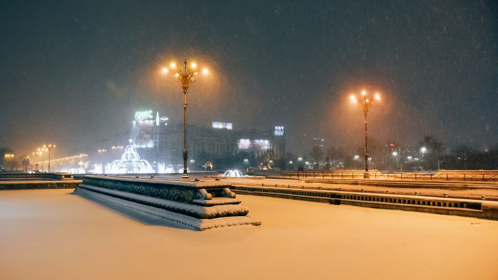 Fotografii cu prima ninsoare din București pe 2017: Imagini dintr-o tură foto făcută de la 4 dimineața, pe 6 ianuarie: Unirii – Universitate – Ateneu – Piața Revoluției – Calea Victoriei – Centrul Vechi.