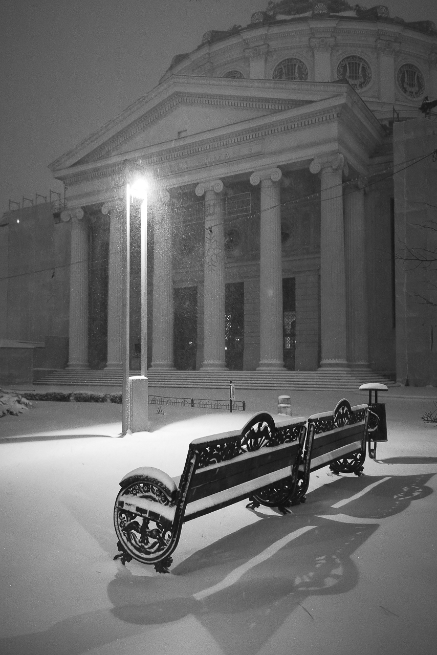 Prima serie din această iarnă. Am ieșit la fotografiat de dimineață (6 ianuarie), de la 4:30, până pe la 7. Tineretului – Unirii – Universitate – Ateneu – Cișmigiu – Calea Victoriei – Centrul Vechi. Vă invit să vedeți imaginile. Mulțumesc tuturor pentru aprecierile lăsate aici, imediat după ce am publicat albumul pe Facebook.