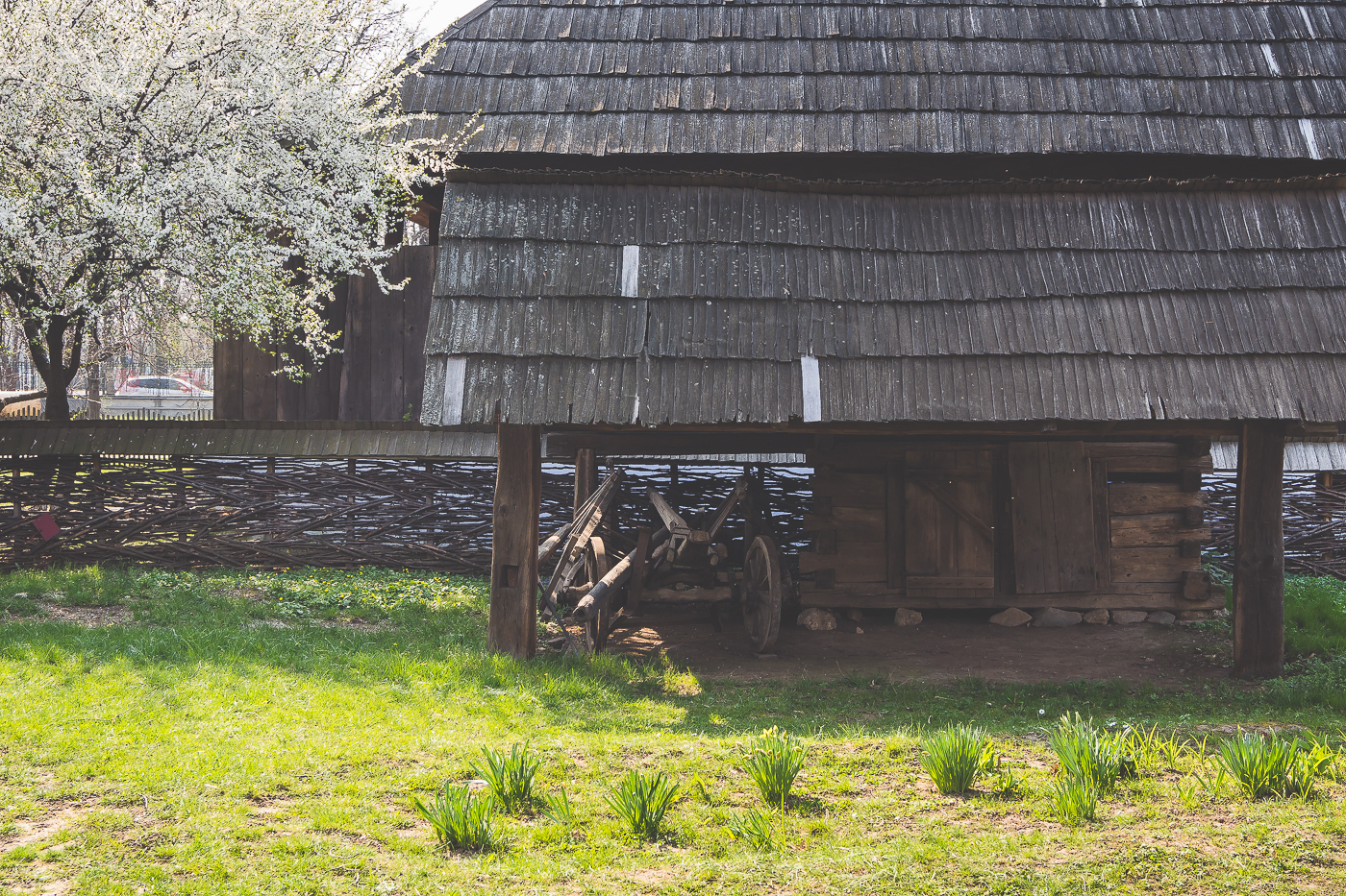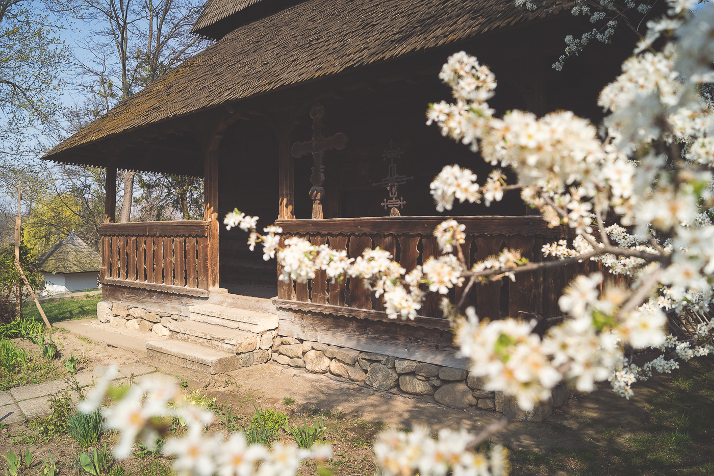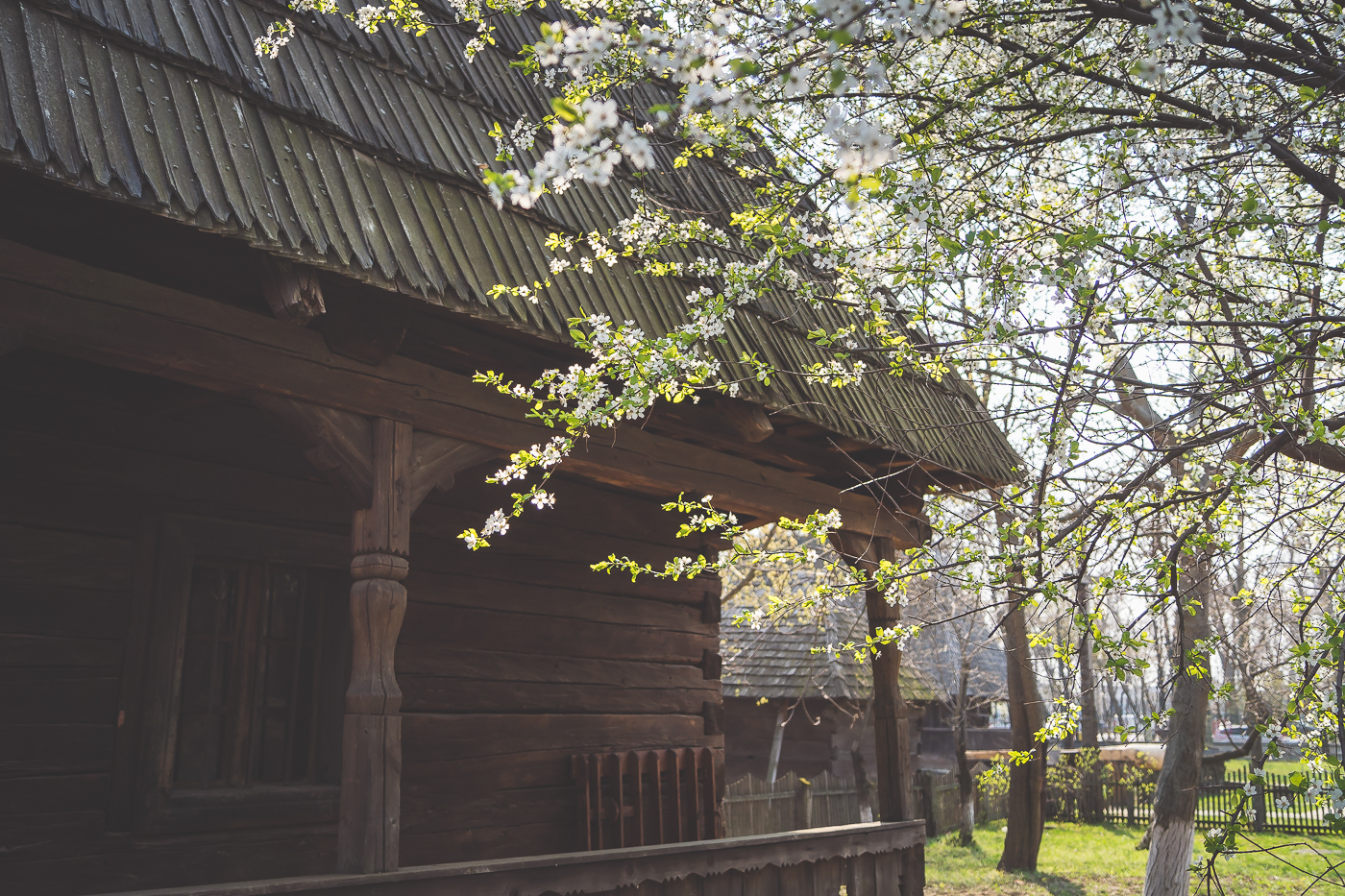 Am găsit astăzi Muzeul Satului din București cum nu l-am mai văzut până acum. Deși arată bine pe tot parcursul anului, copacii înfloriți și iarba proaspăt înverzită fac ca pe durata primăverii să fie cu atât mai spectaculos. Iar dacă ai norocul unui soare așa cum a fost azi, rețeta e deja completă.