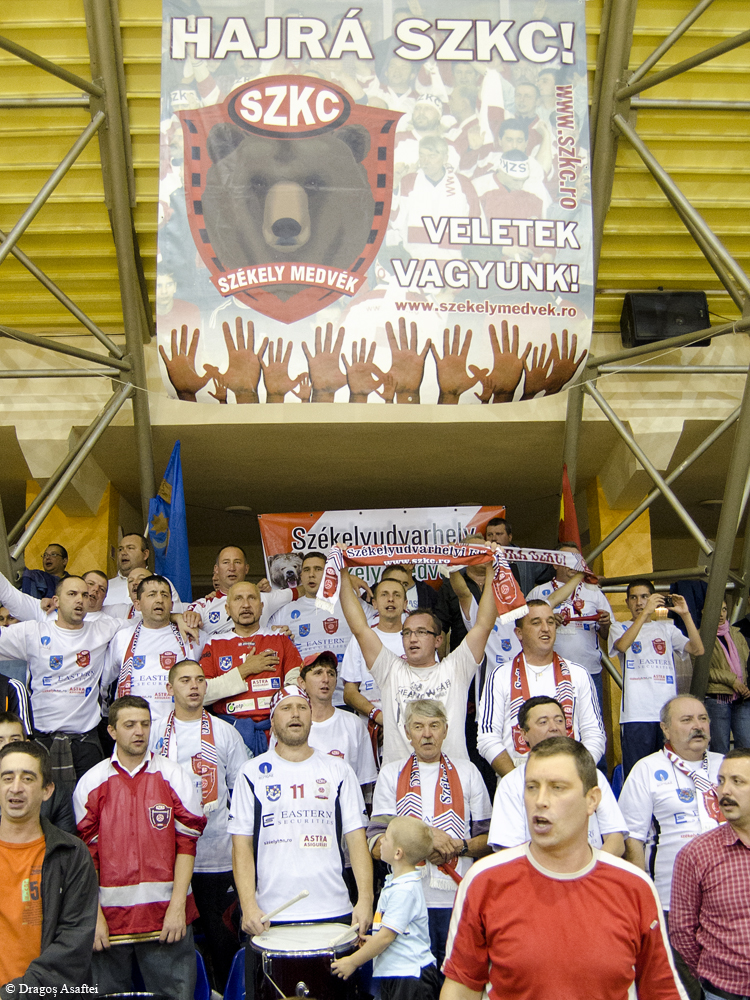 Apropo de galerii, mi se pare destul de urât ca toată susținerea ta ca suporter să se rezume la o simplă suflare într-o vuvuzea. Cam așa a fost galeria echipei băcăoane, reușind la un moment dat să acopere întregul public și galeria echipei gazdă care scanda urale plăcute și cu mesaj bine definit, doar prin simplele vuvuzele al căror sunet devenise deja insuportabil. Asta e, trecem peste acest lucru și peste faptul că la final, în momentul în care s-a cântat imnul echipei HC Odorhei, în limba maghiară, galeria băcăoană scanda ”ROMÂNIA!”.