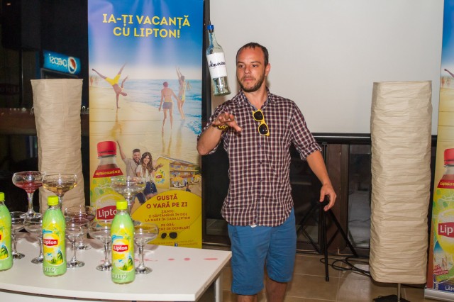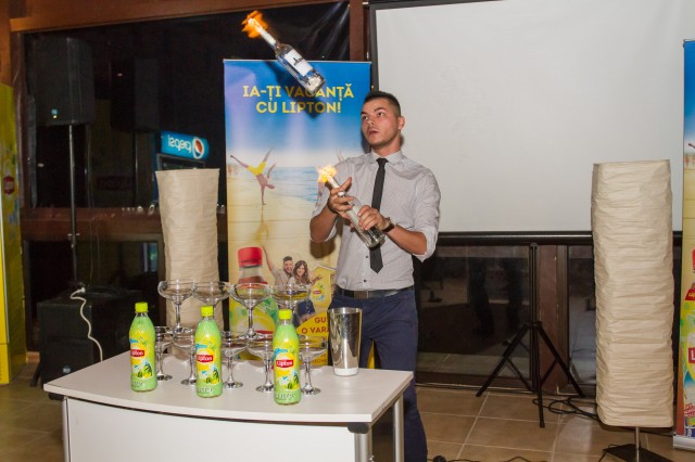 Iar acum să trecem la fotografiile de care spuneam din momentul petrecerii de lansare a casei. 🙂 La petrecere a fost și barmanul Vali Luca. A făcut un show pe cinste! Așa se vede din fotografii.