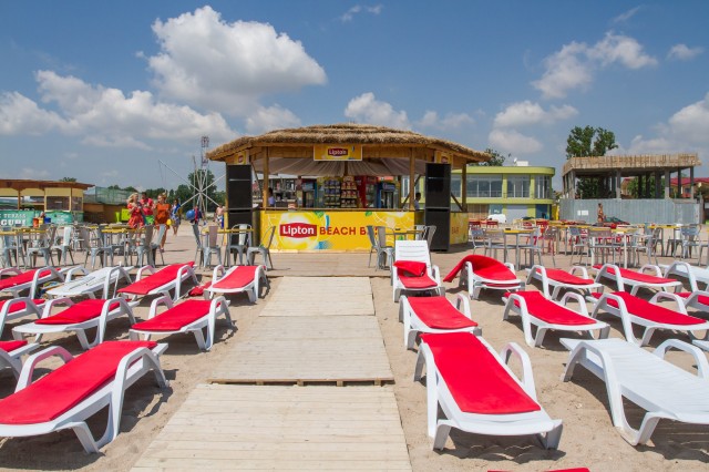 Apoi a urmat filmarea celorlalte secvențe. Locul în care s-a filmat această parte a reclamei, atât cea de sus, cât și cea care urmează, este Plaja Lipton, care se află imediat lângă Obeliscul din Costinești. O veți repera foarte ușor pe plajă. Plaja rămâne așa amenajată toată vara. Sunt șezlonguri, așa cum vedeți și în poze, este chiar și un beach bar care arată într-un mare fel. E un loc care te poate face ușor să te simți bine. Aici am filmat și următoarele secvențe ale reclamei.