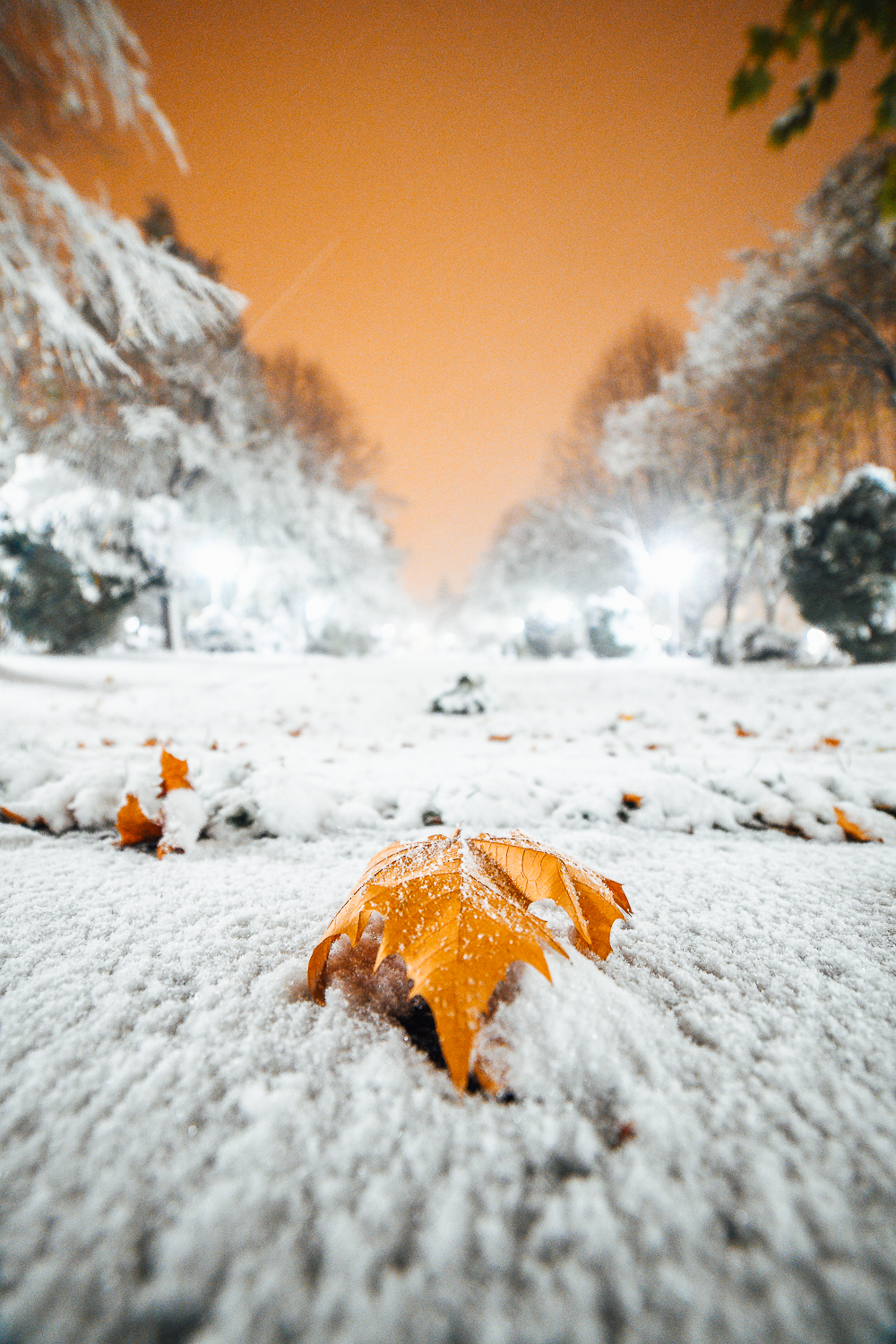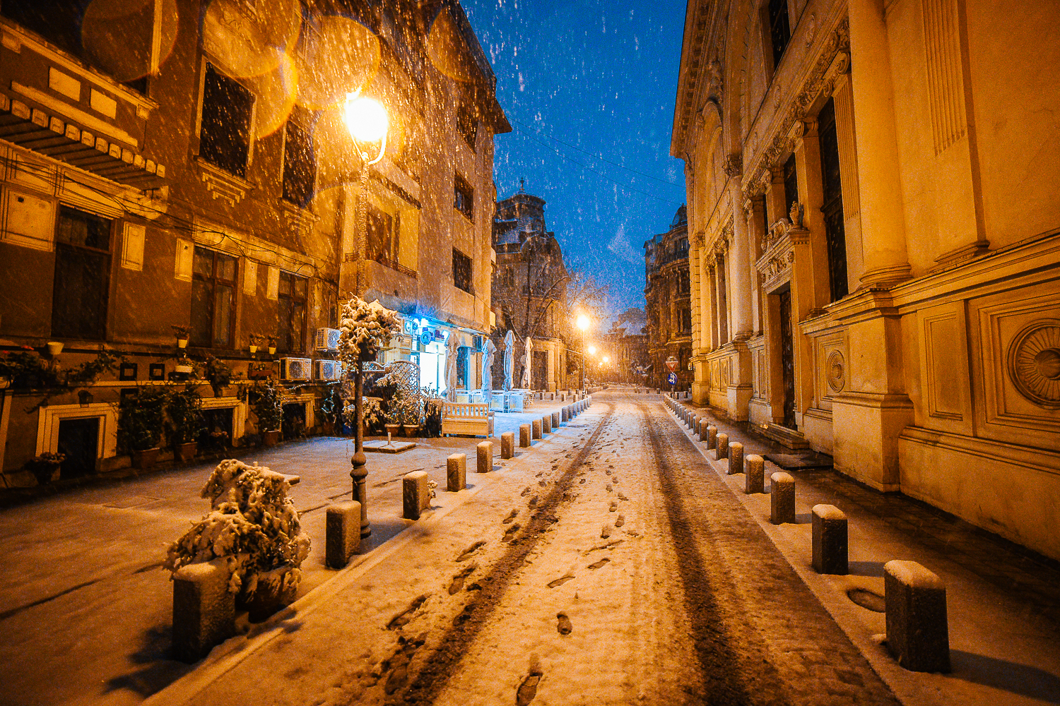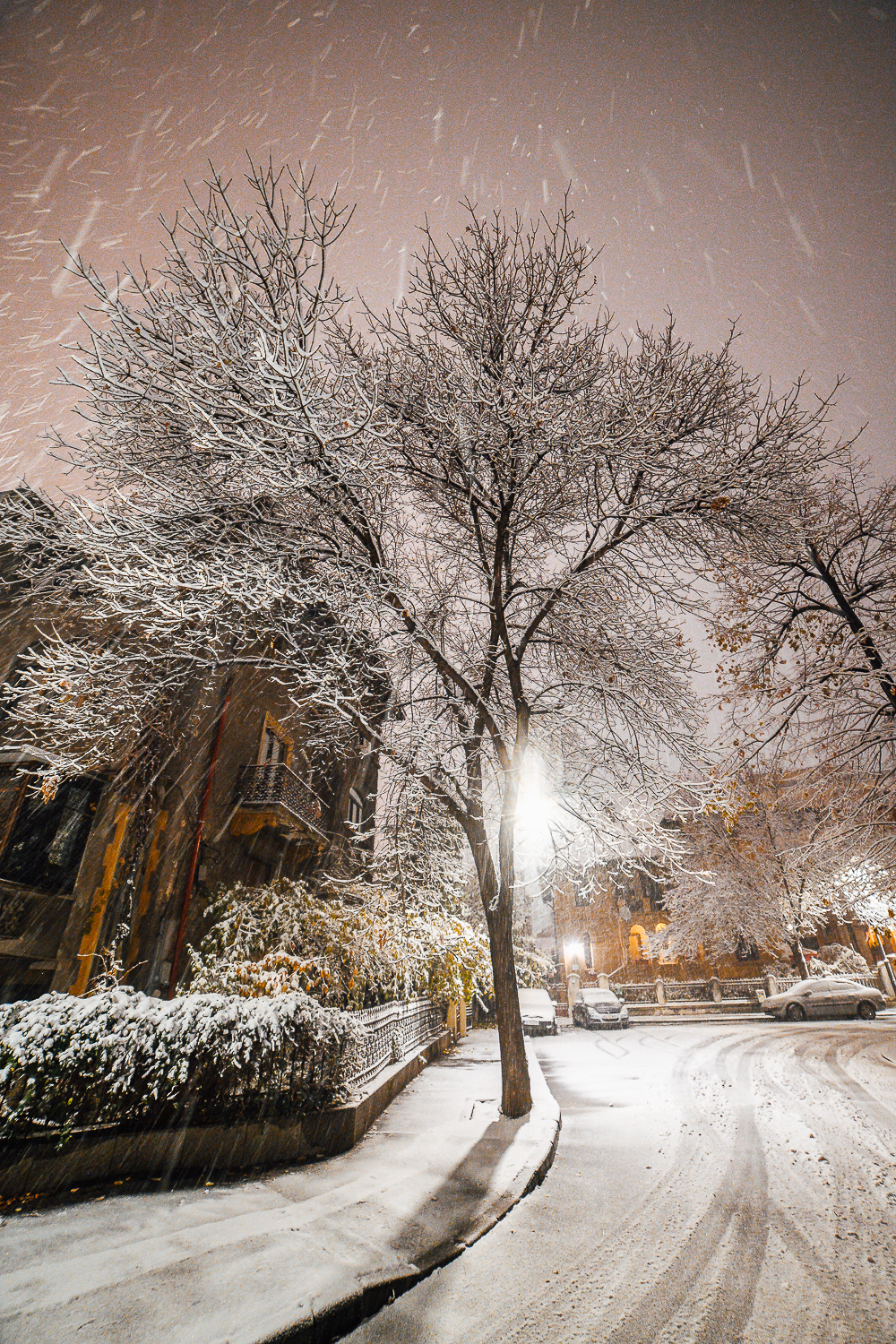 Mi-am făcut deja un obicei din a ieși în miez de noapte, pe parcursul primelor ninsori din iarnă, ca să fotografiez peisajul cât încă nu e atins de pluguri, de mașini, de forfota zilei. Sau de ploaia care topește rapid toată zăpada și o transformă în ceva care te-ar ține în casă toată ziua.