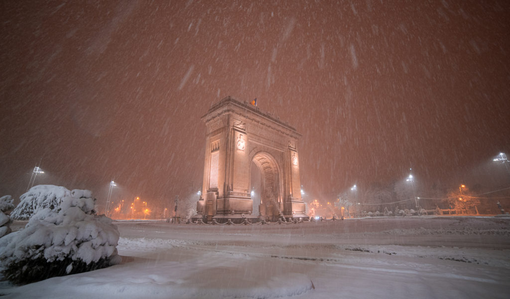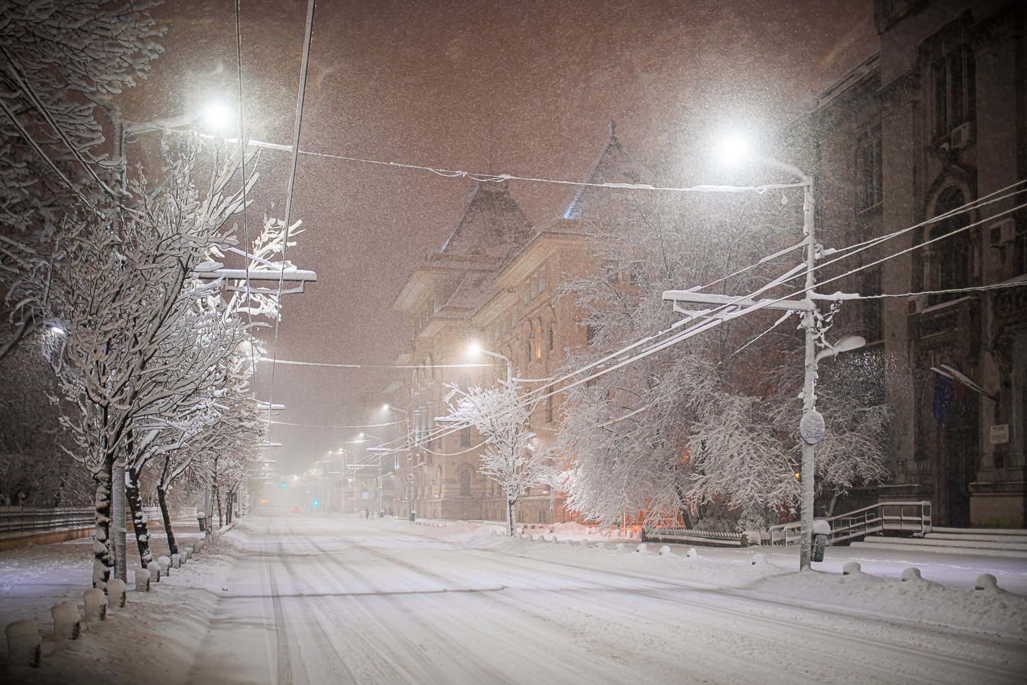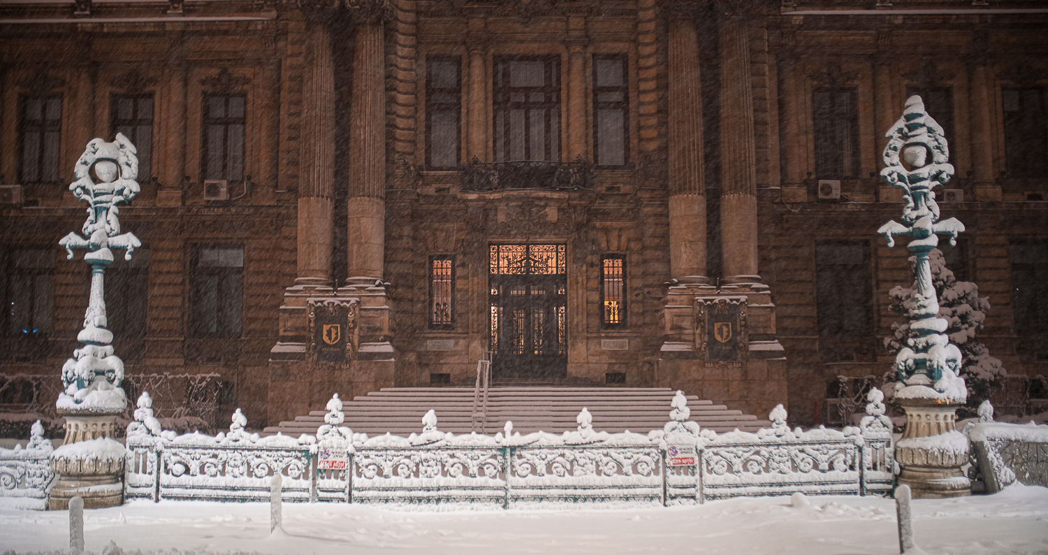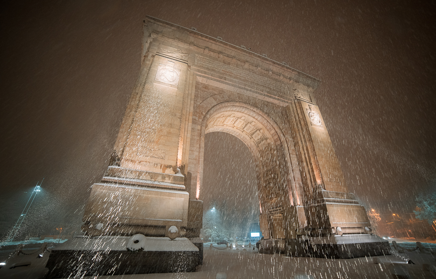 Toiul nopții m-a prins traversând Bucureștiul de la Arcul de Triumf spre centru, apoi înapoi în nord, când pe străduțe, când pe bulevardele mari, dar tot goale. Doar plugurile mai opreau puțin din liniștea dată de fulgii mari de zăpadă.