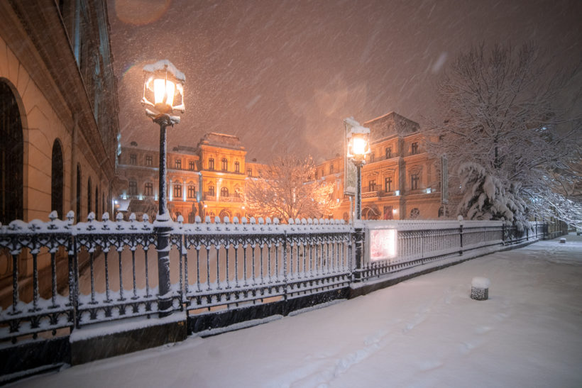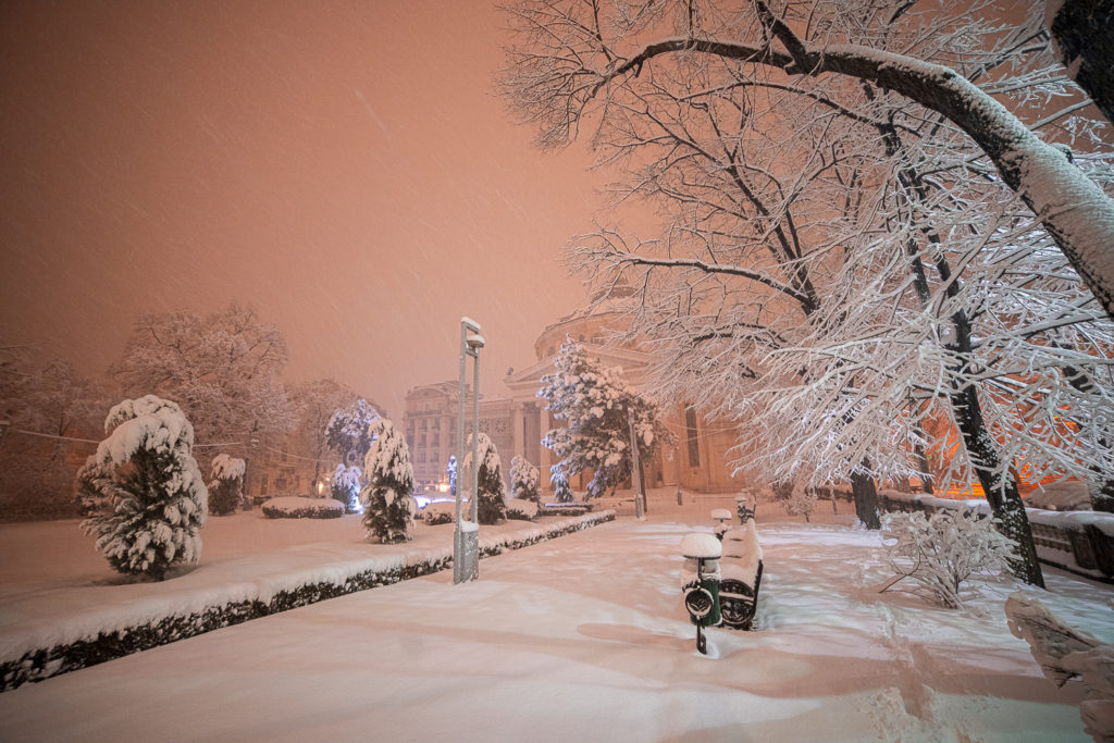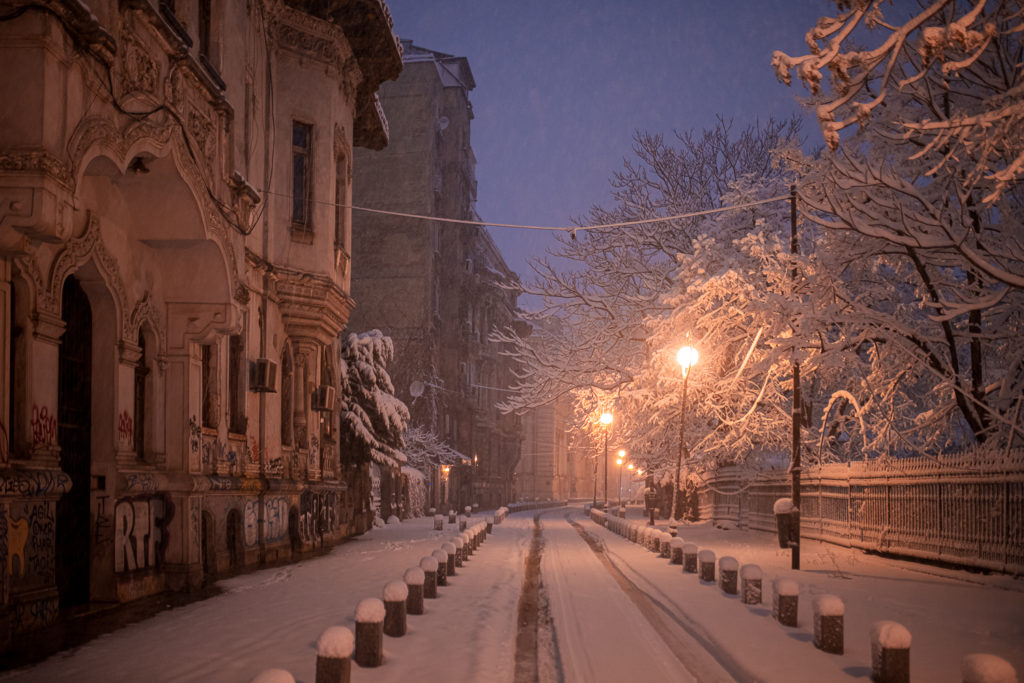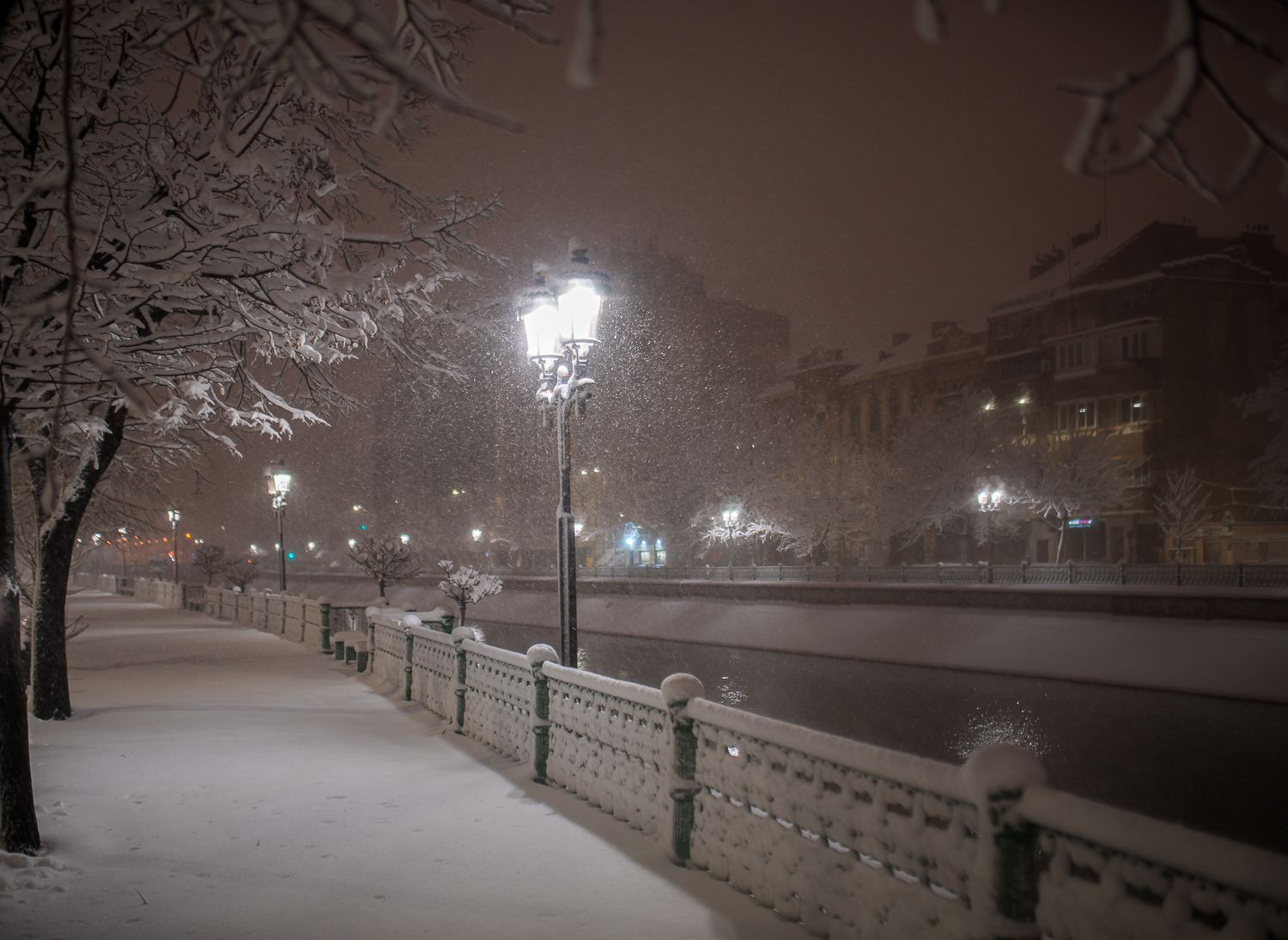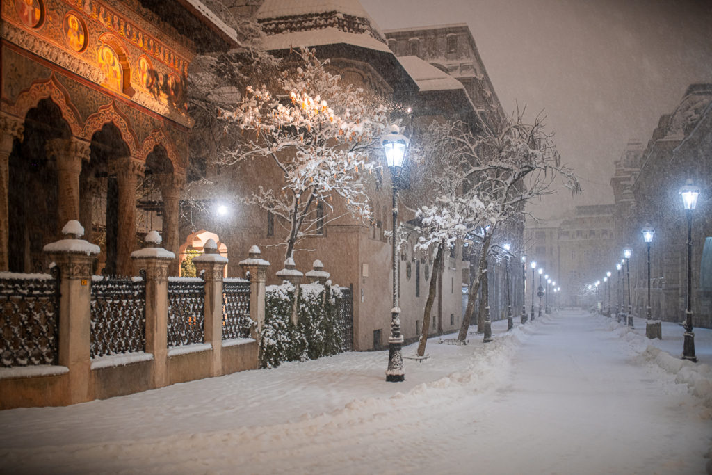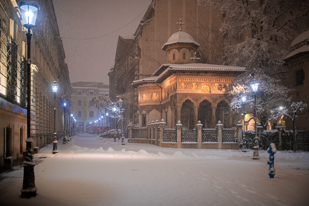 Preț de câteva ore, cam de pe la 2 noaptea și până la 4-5 dimineața, Bucureștiul e complet liniștit. Vezi orașul așa cum nu o mai poți face niciodată iarna asta. Încă nu sunt formate mormanele de zăpadă de pe marginea străzilor, zăpada se așterne frumos peste tot și ai toate șansele să te întâlnești cu niște priveliști unice în an.