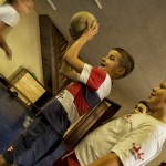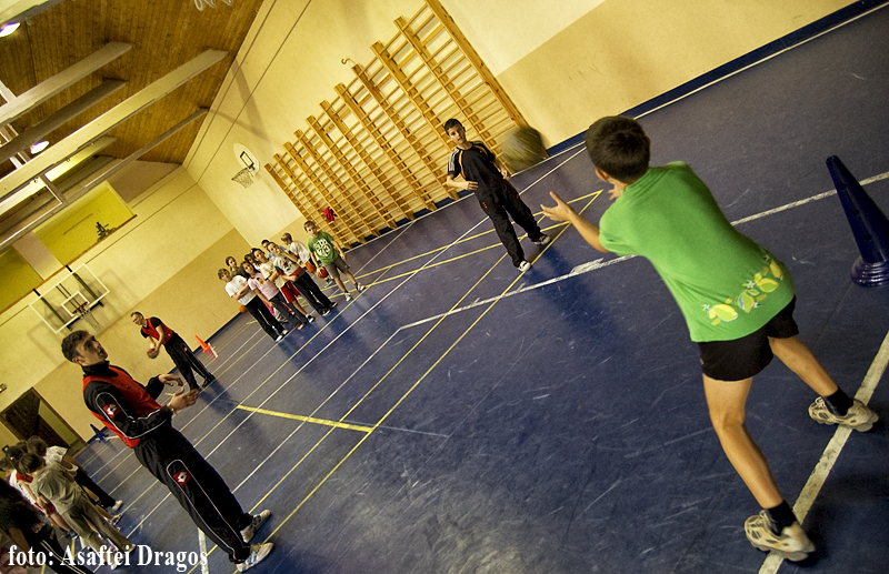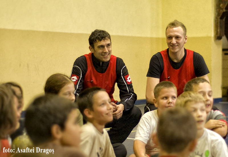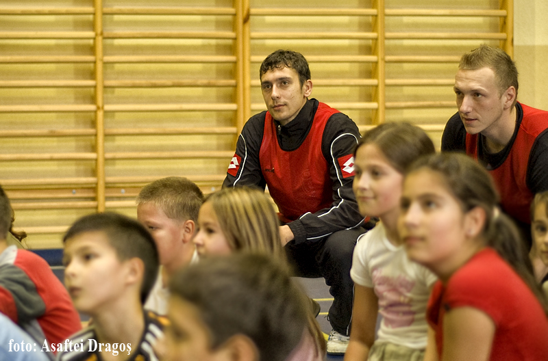 Ora de educaţie fizică ţinută la Liceul Reformat a avut ca „protagonişti” jucătorii Komporály Attila şi Orbán Levente.
