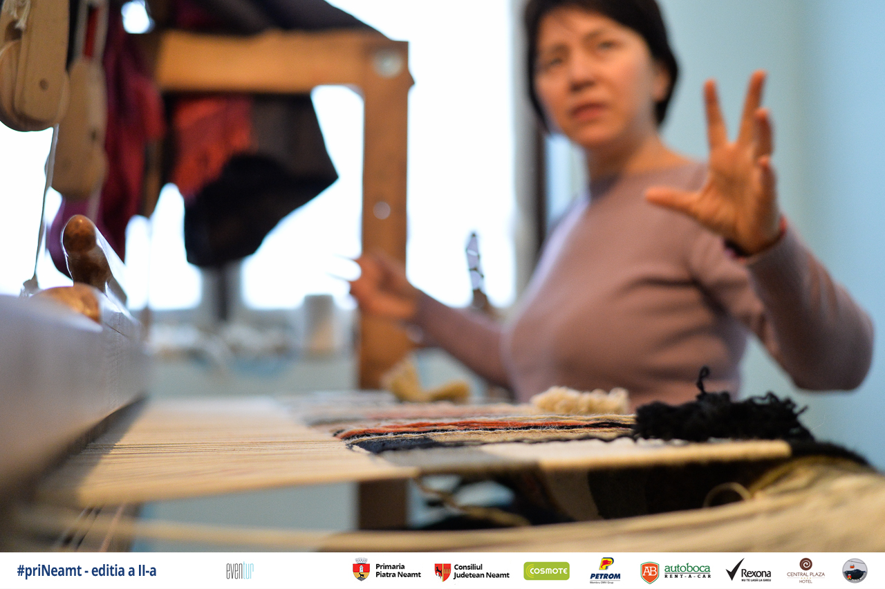 Prima oprire în turul pe care aveam să-l facem a fost în satul Bălțătești din comuna cu același nume. Aici am ajuns la casa familiei Mihalache. Doamna, Maria Mihalache, este meșter popular, iar de mai bine de 20 de ani realizează la război tot felul de țesături, fie pentru uz casnic, fie în scop decorativ. Alături îi este și soțul ei care o sprijină în tot ceea ce face.