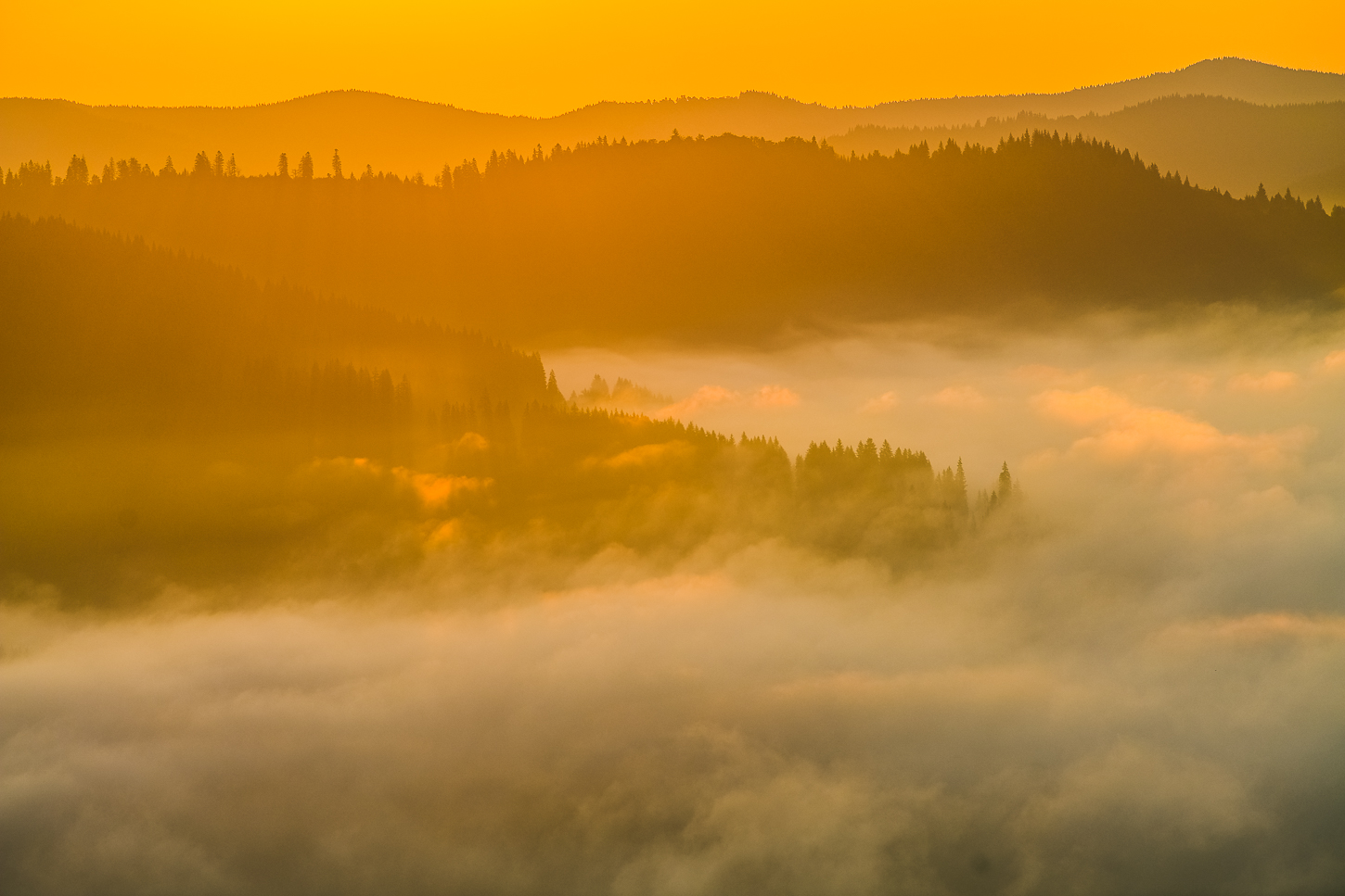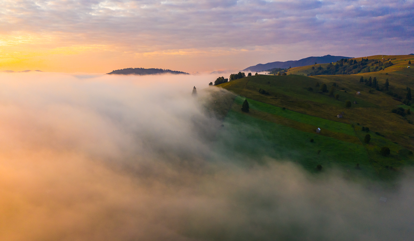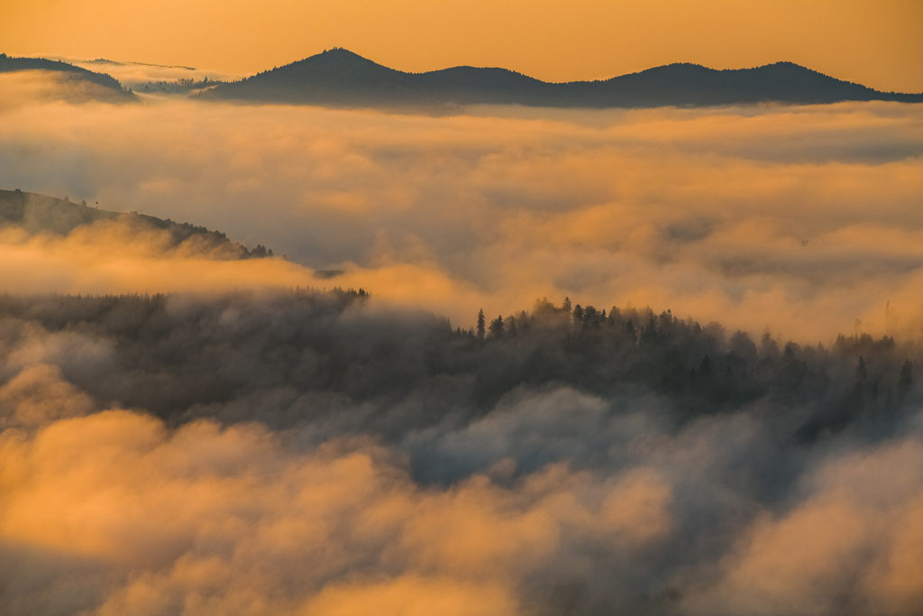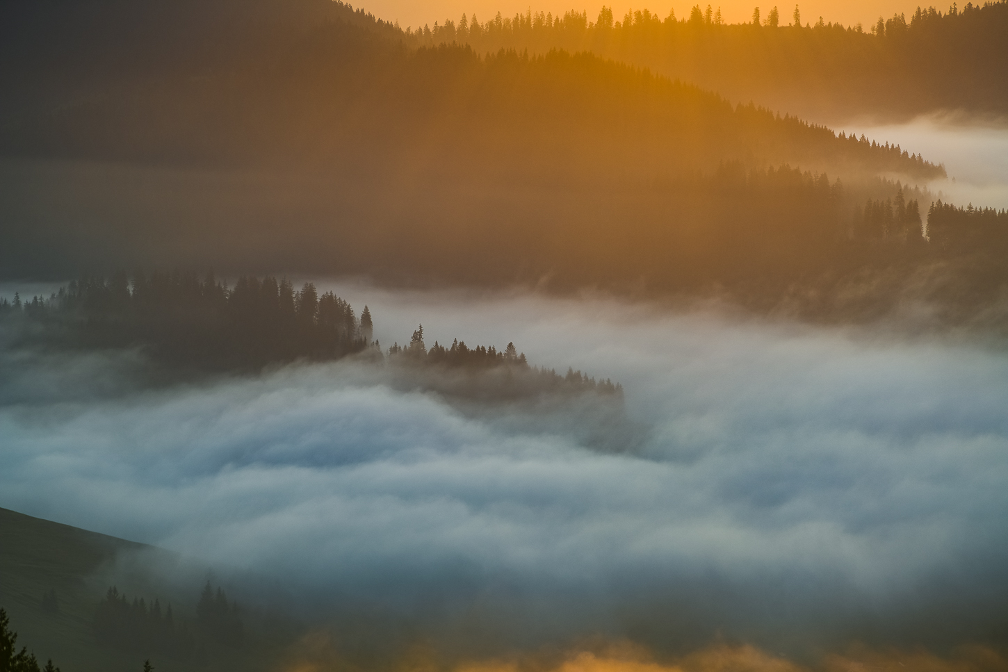 Aflat la intersecția a trei depresiuni, respectiv trei zone în care curenții de aer au temperaturi diferite, ceața își face simțită prezența destul de des. Am avut norocul să văd spectacolul care se creează la răsărit, deasupra ceții, și am rămas pur și simplu fără cuvinte.