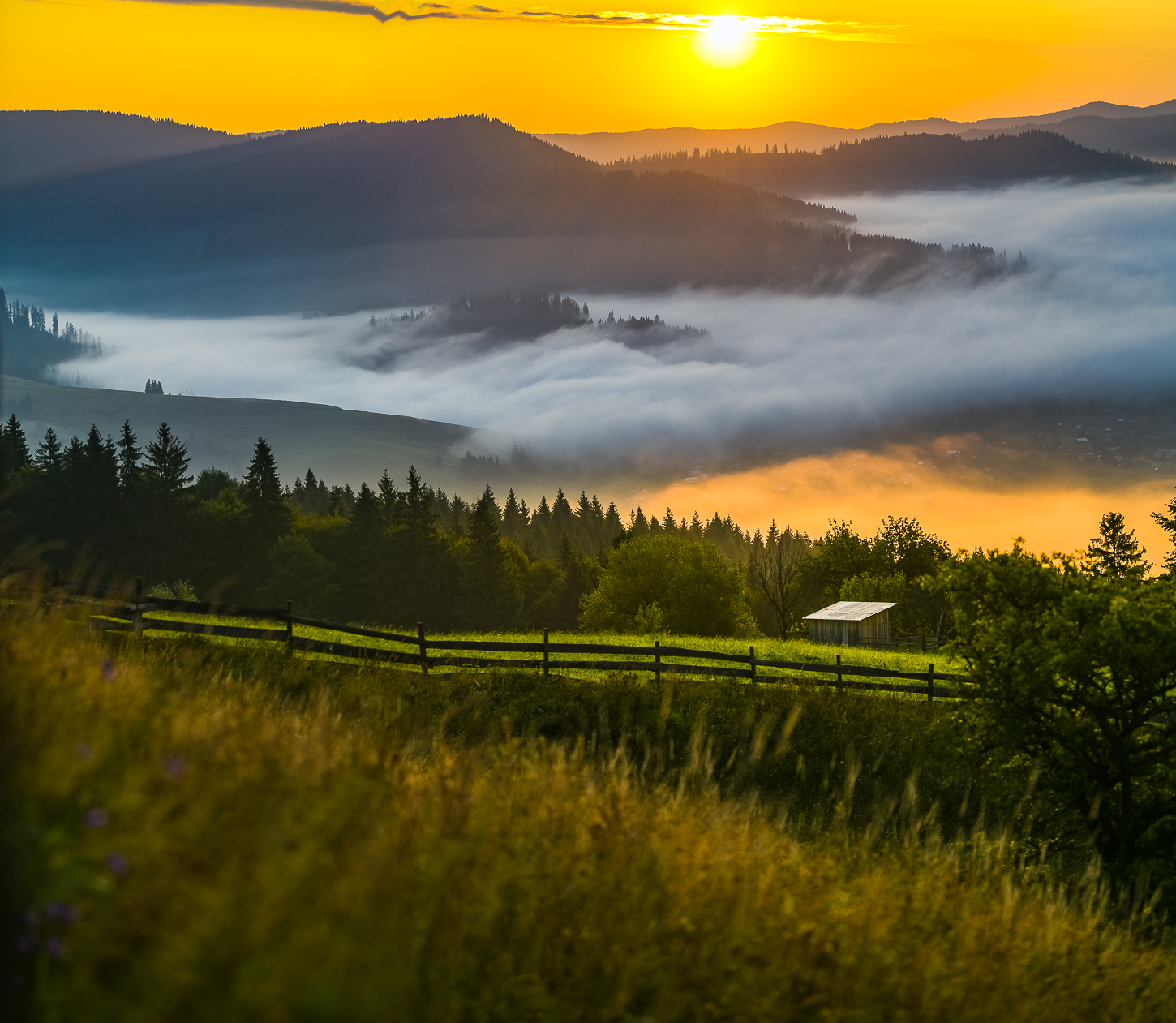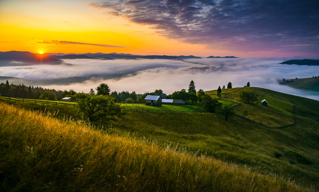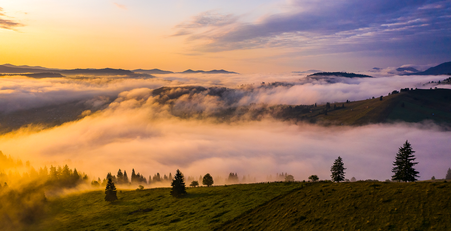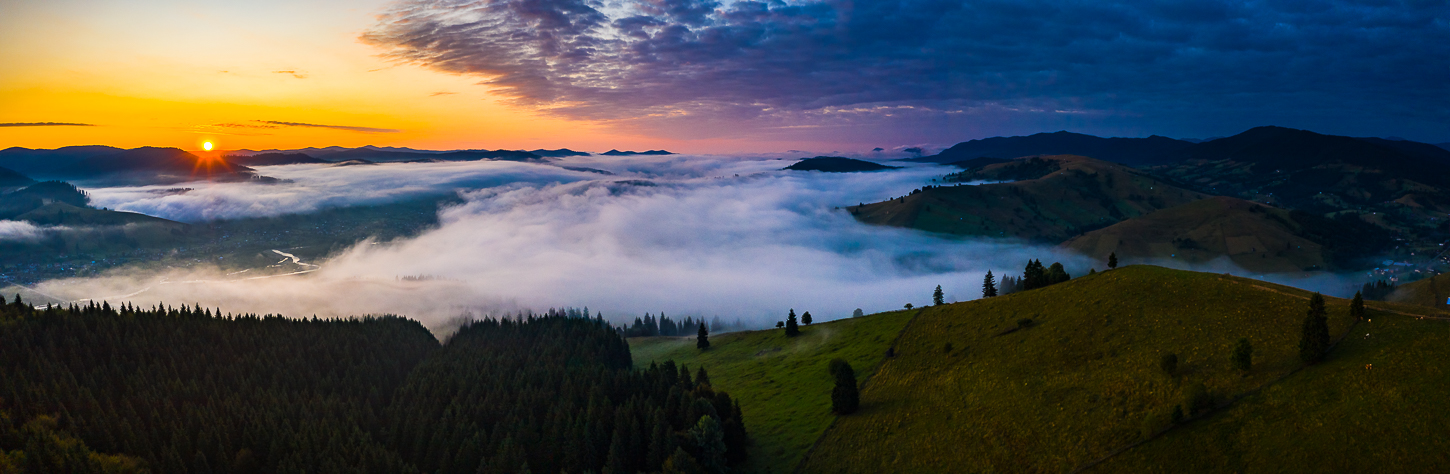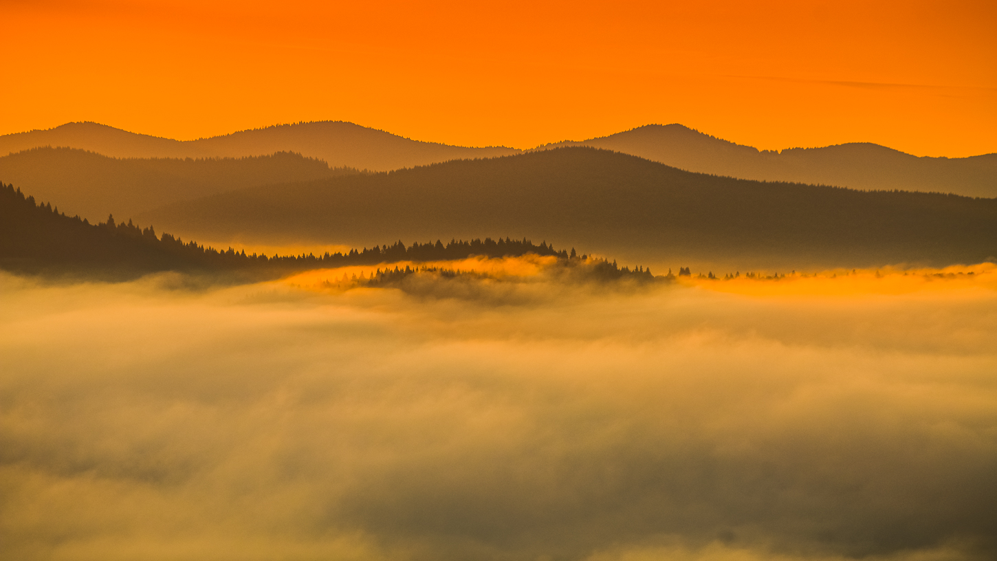 Aflat la intersecția a trei depresiuni, respectiv trei zone în care curenții de aer au temperaturi diferite, ceața își face simțită prezența destul de des. Am avut norocul să văd spectacolul care se creează la răsărit, deasupra ceții, și am rămas pur și simplu fără cuvinte.