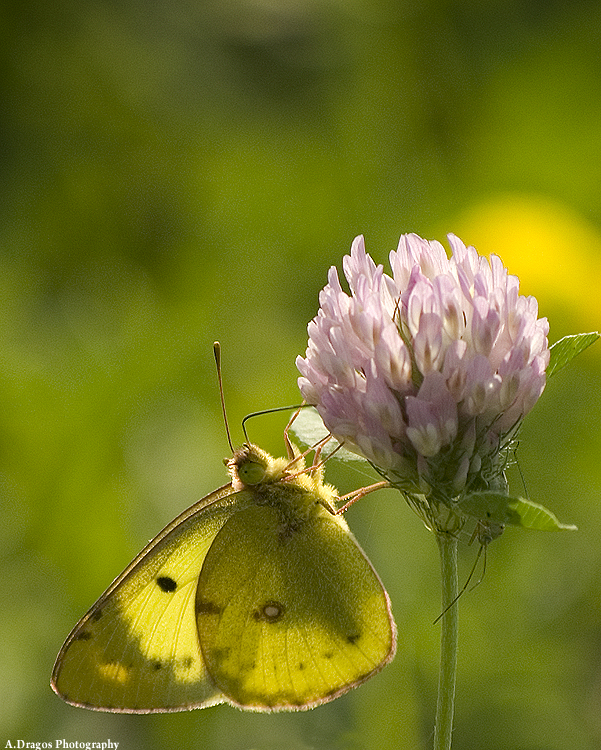 Interesant.Floarea nici nu s-a trezit bine că a fost deja invadată de 3 vietăți: fluturele,insecta și tu cu aparatul tău.