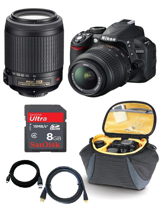 Achiziționând pachetul de la Photosetup aveți parte de următorul pachet. Nikon D3100 alături de obiectivele Nikkor AF-S 18-55mm f/3.5-5.6 VR și Nikkor AF-S 55-200mm f/4-5.6 VR, card memorie Sandisk 8 GB Ultra SDHC + cablu HDMI + cablu USB si genata foto KATA C-59. E practic kit-ul perfect! Geantă, obiective, accesorii, tot ce ai nevoie.