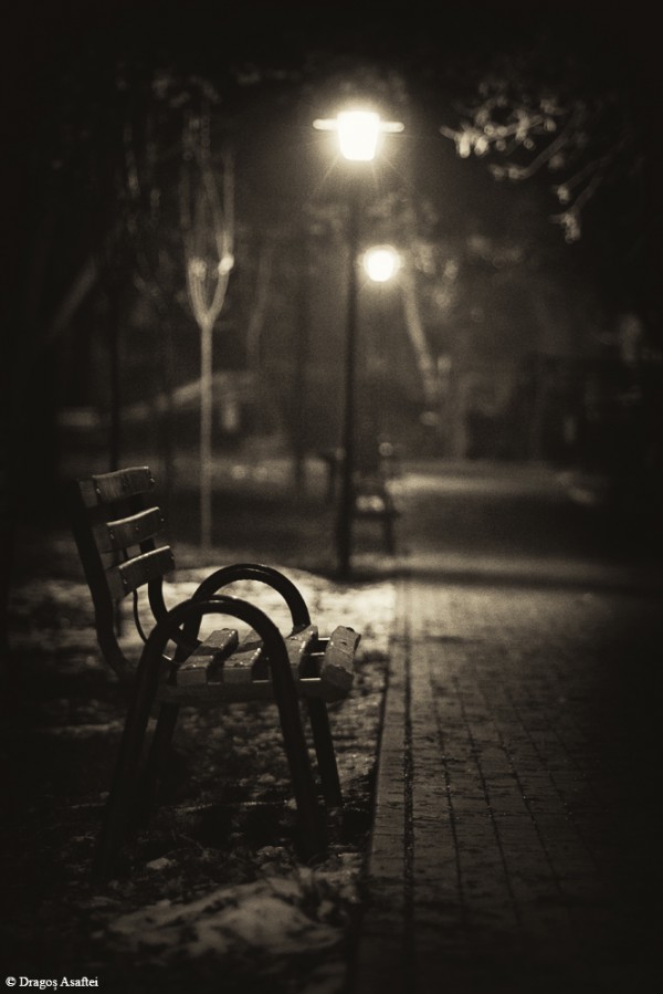 Fotografiile de mai jos prezintă o bancă înghețată acoperită de un aer slab evident al toamnei, dintr-un parc pustiu, într-un peisaj nocturn. Banca e goală. Gândiți-vă că sunteți voi pe acea bancă, gândiți-vă la cum ați vrea să vă vedeți în acest an. Ce v-ați propus pentru 2012? Care e noua imagine a voastră în anul care tocmai a sosit?