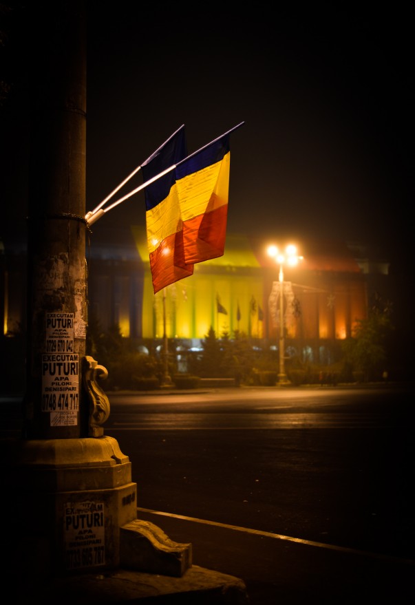 Foarte foarte faină fotografia cu cele două steaguri fluturând în lumină! Îmi face aşa un dor de casă, dor de Bucureşti…
