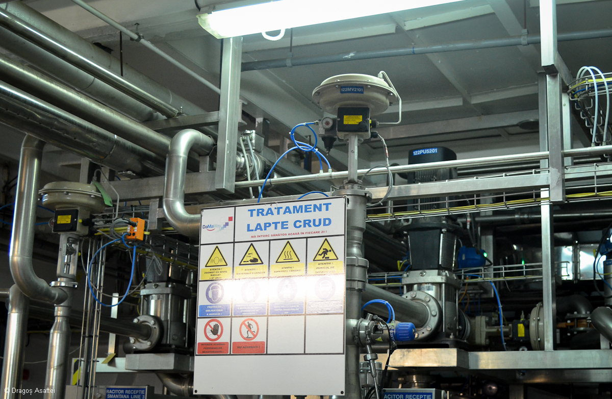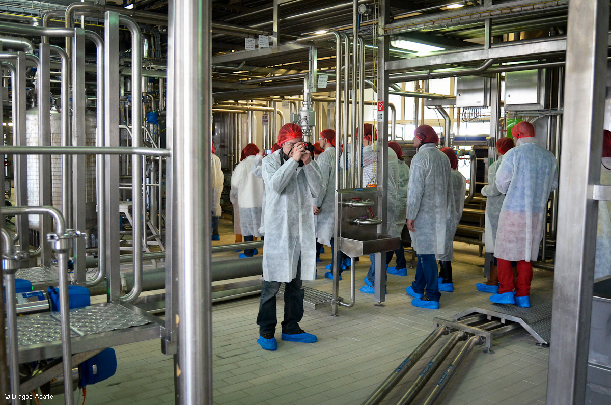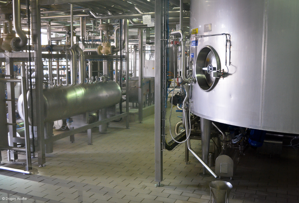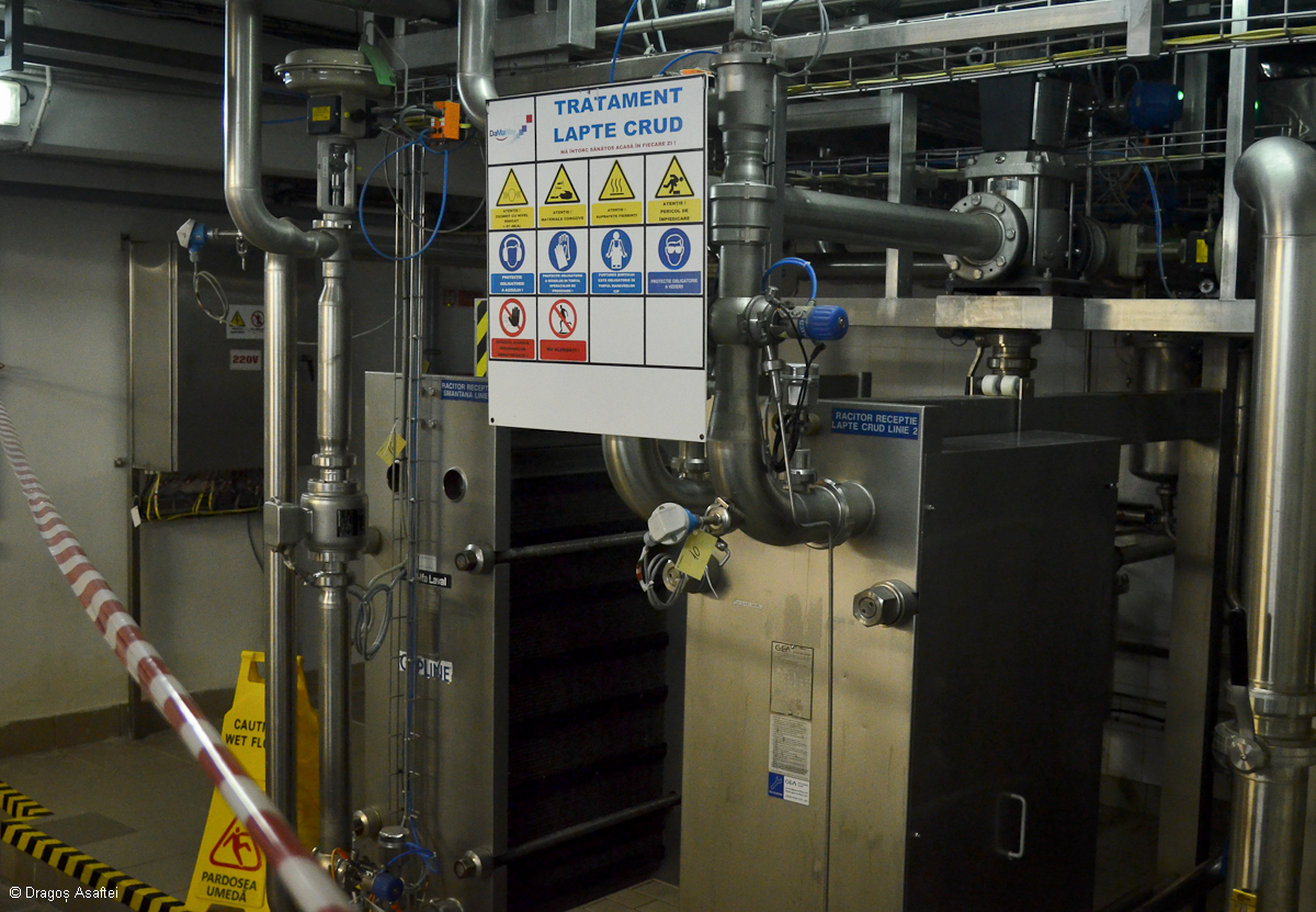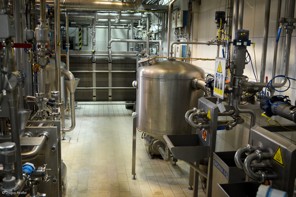 Am vizitat întâi modulul în care laptele este pregătit pentru procedurile care vor urma. Aici e etapa în care laptele este filtrat și aranjat în așa fel încât să poată fi folosit în cele mai bune condiții în etapele următoare.