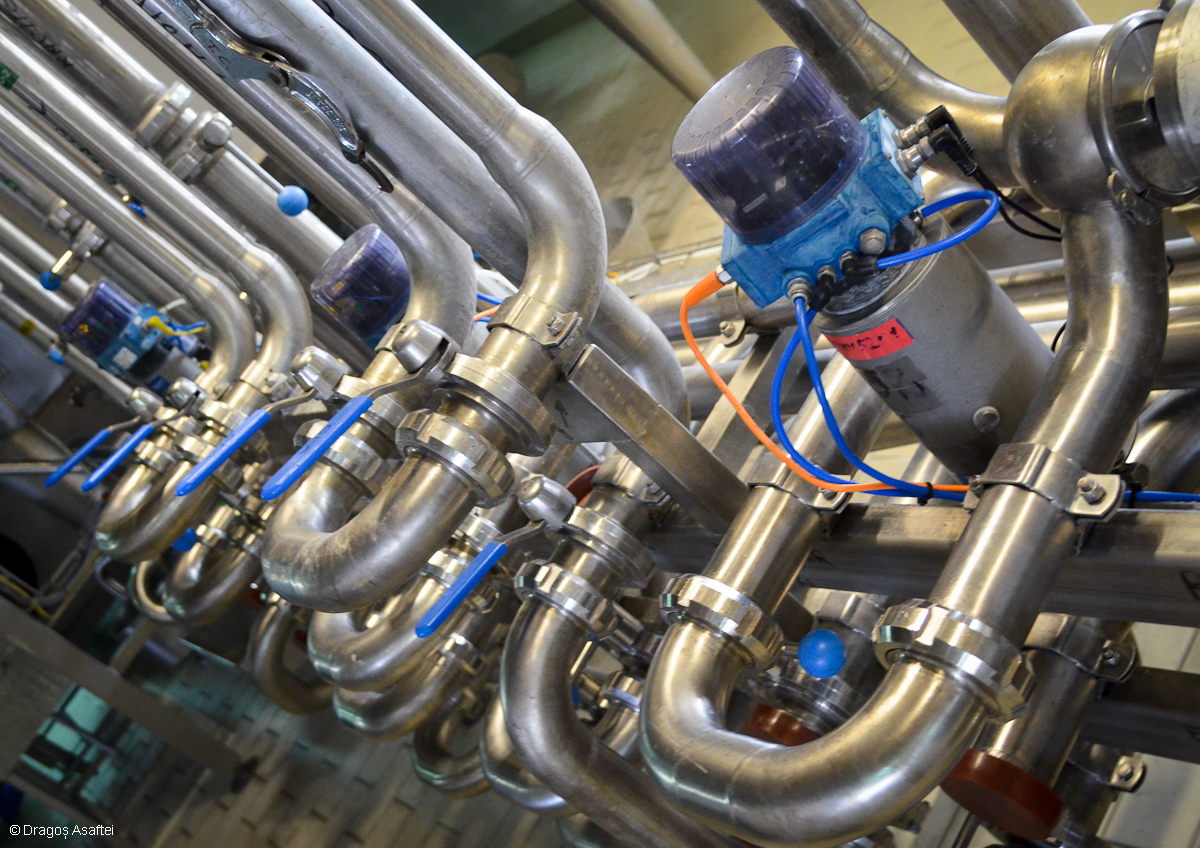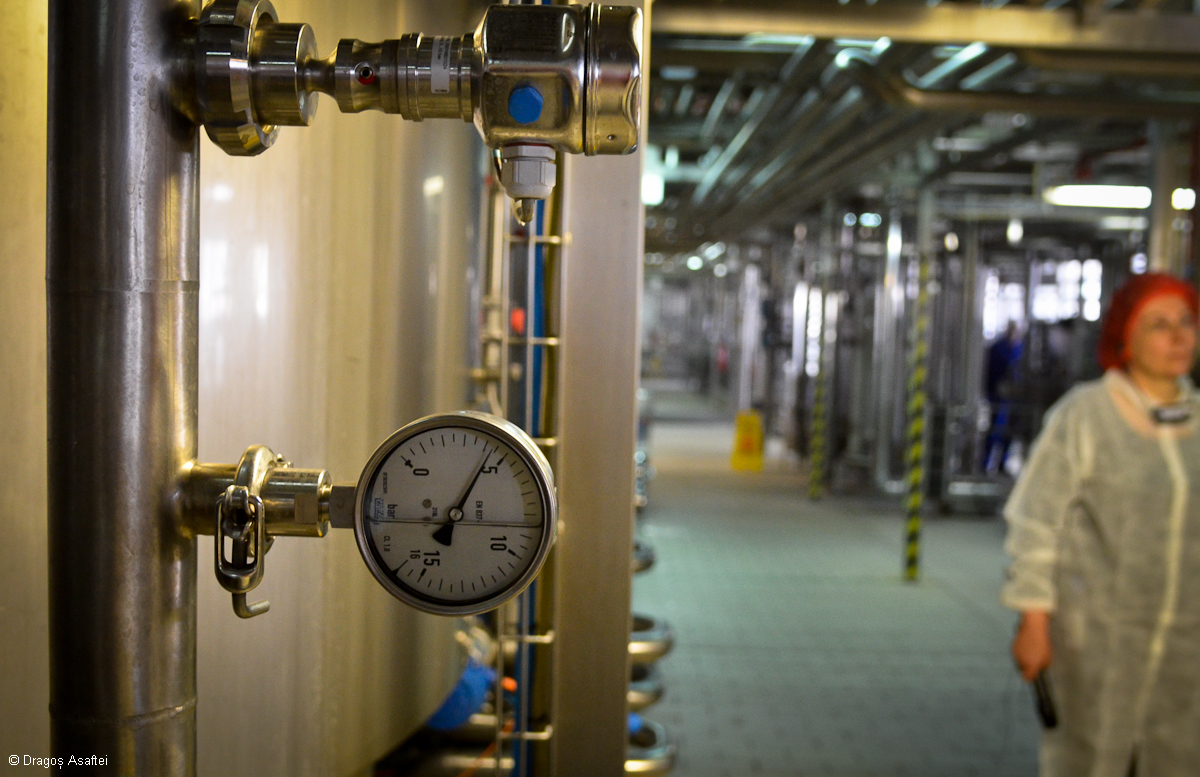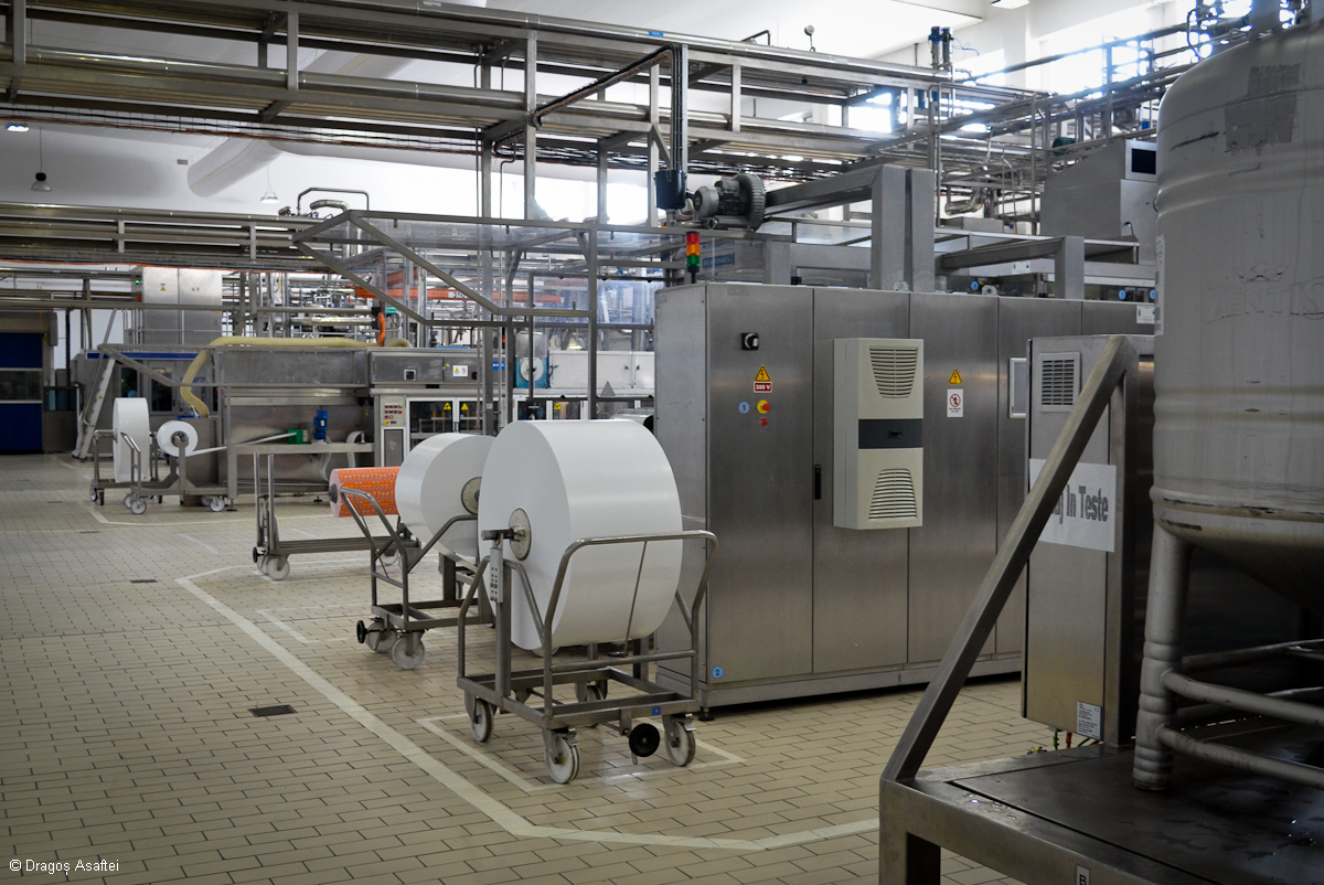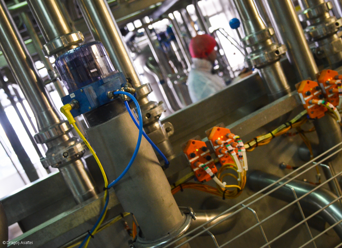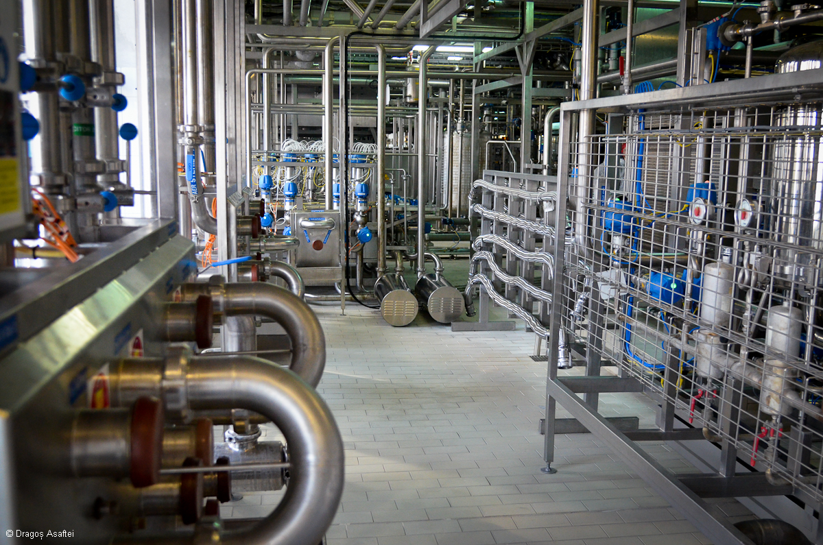 Am vizitat întâi modulul în care laptele este pregătit pentru procedurile care vor urma. Aici e etapa în care laptele este filtrat și aranjat în așa fel încât să poată fi folosit în cele mai bune condiții în etapele următoare.