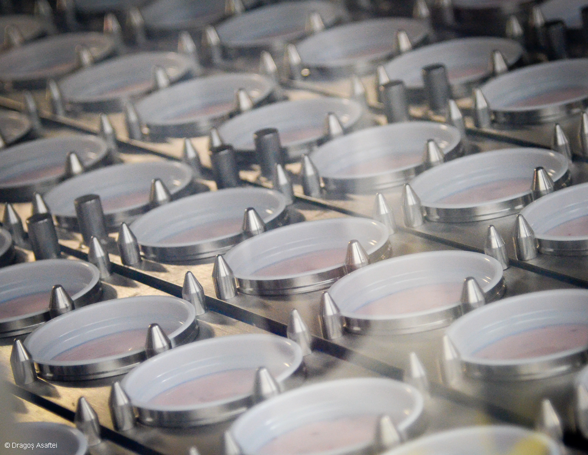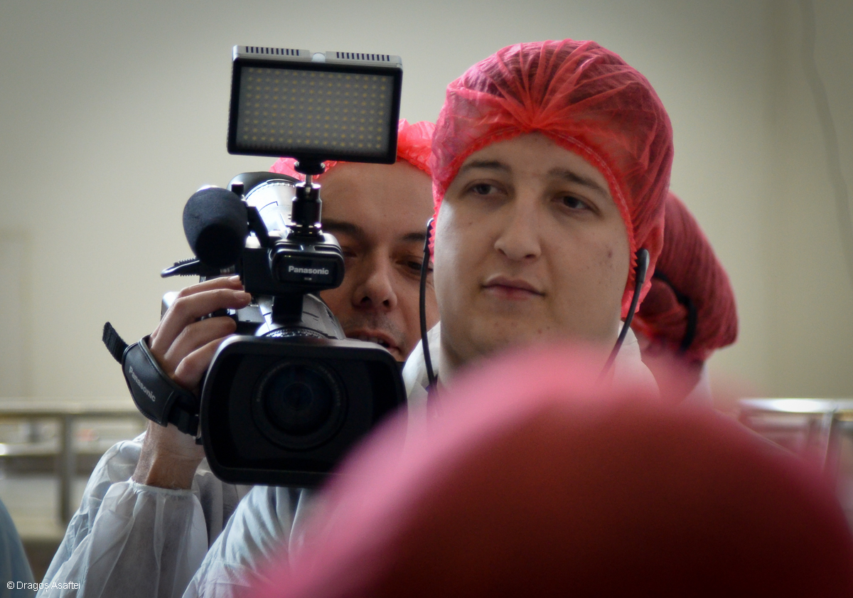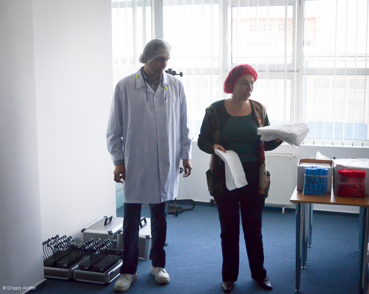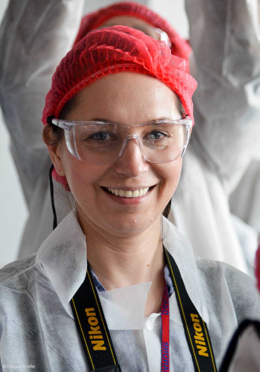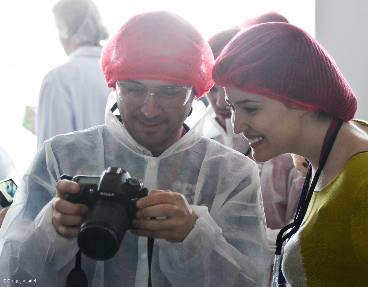 Trecând la vizitarea fabricii, am fost nevoiți să purtăm un echipament special pentru a nu contamina zona de producție. Chiar dacă produsele nu se află în contact direct cu niciun alt mediu, mijloacele de protecție au fost necesare. Arătam toți ca niște cosmauți simpatici.