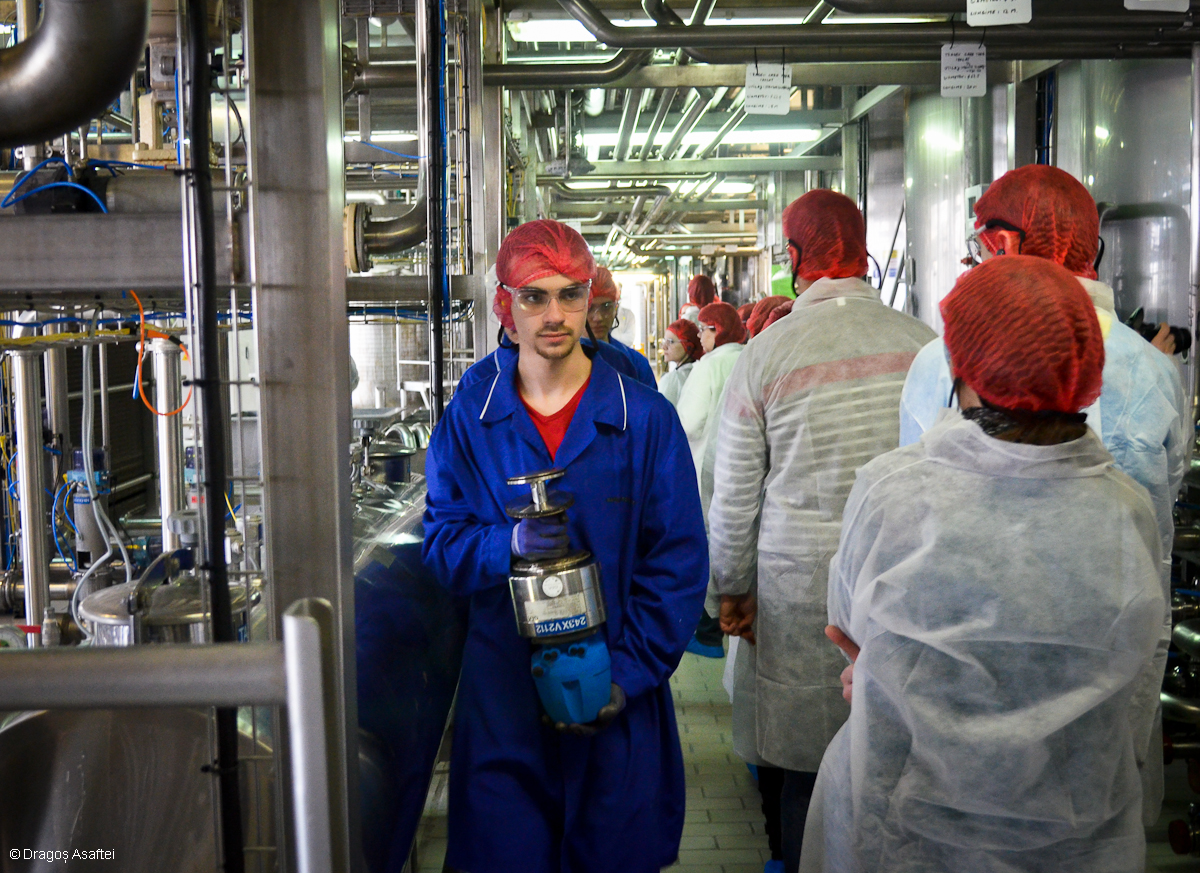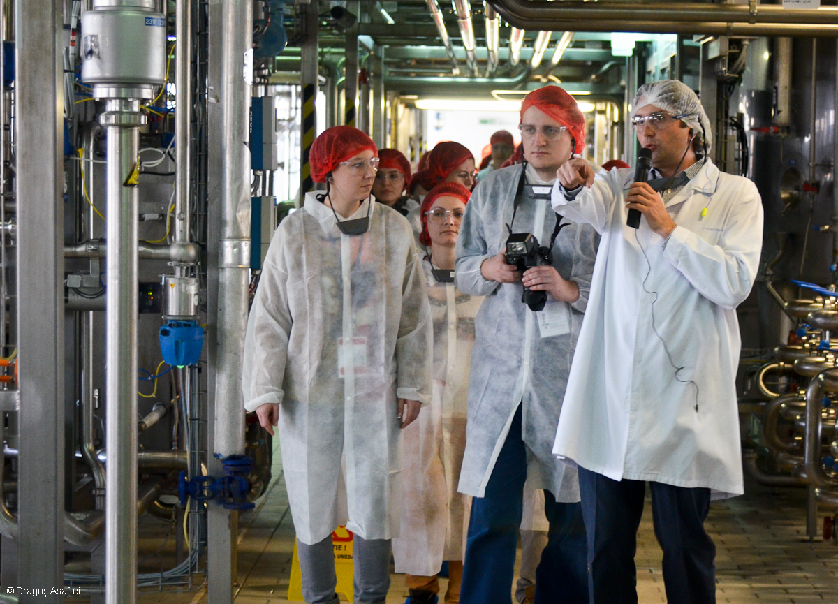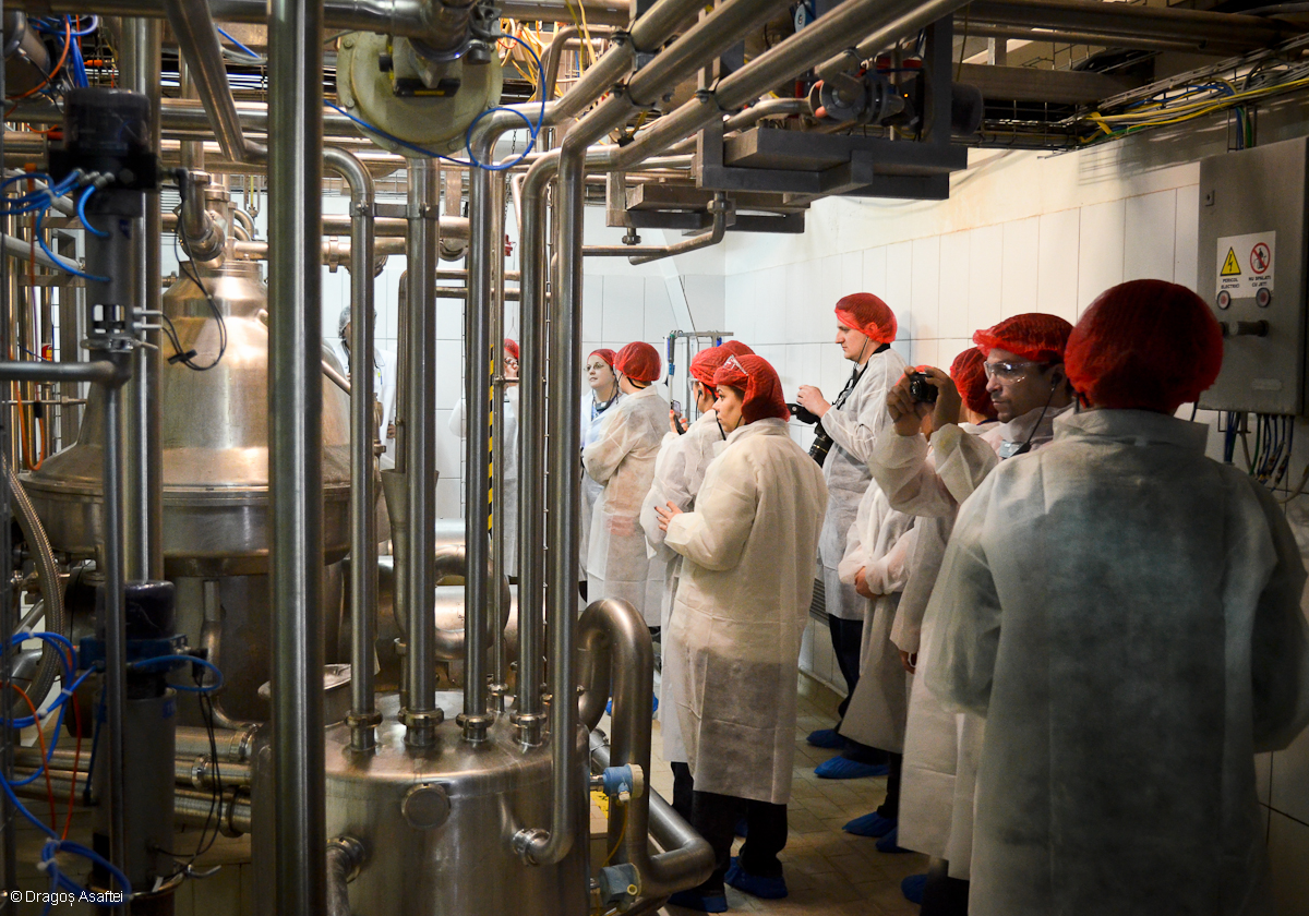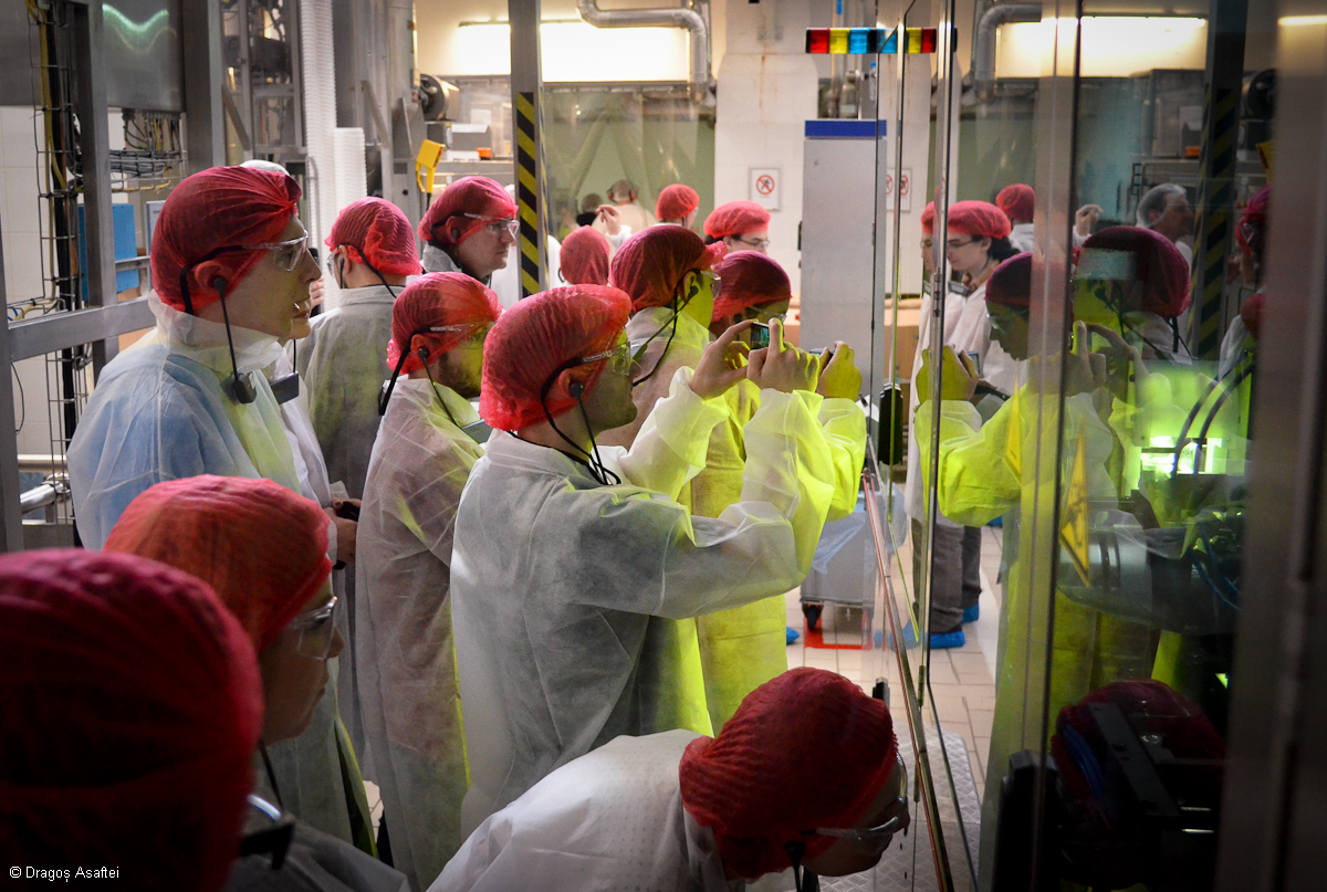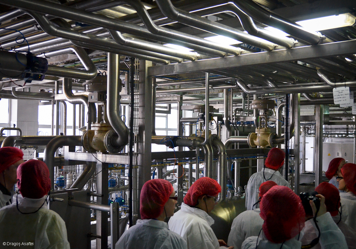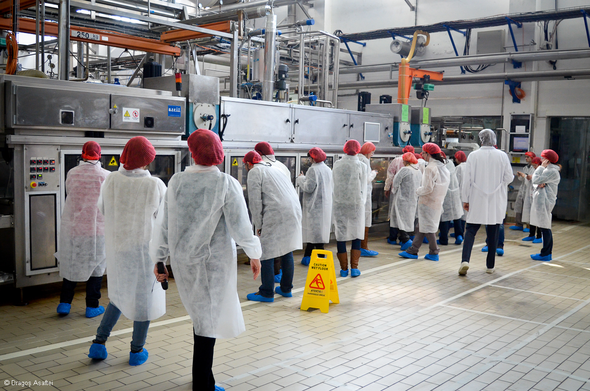 Mai apoi a urmat vizitarea liniei de producție și de ambalare a produselor. E impresionantă viteza cu care lucrează fiecare aparat și volumul imens preluat și prelucrat.