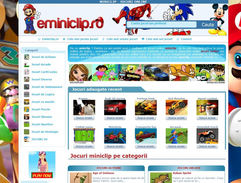 Recomand deci site-ul eminiclip.ro tuturor pasionaților de astfel de jocuri online, găsind aici jocuri din orice categorie dorită.