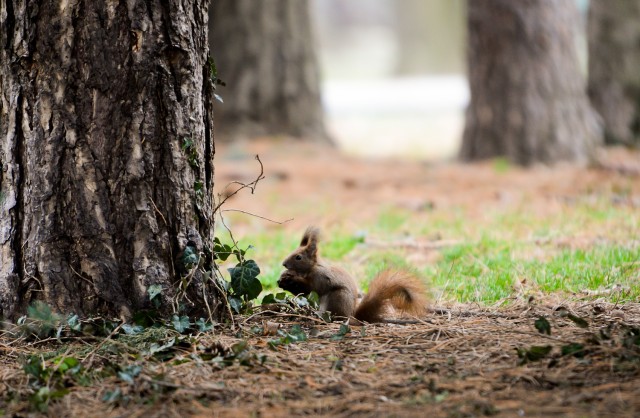 Obiectivul 70-200 f/2.8, cu ajutorul teleconvertorului, a devenit acum 140-400 f/5.6 Adică aveam 400mm cu f/5.6, mai mult decât suficient pentru wildlife-ul dintr-un parc. Și am început să fotografiez, bucuros că am găsit veverițele în același loc în care le fotografiasem și data trecută.