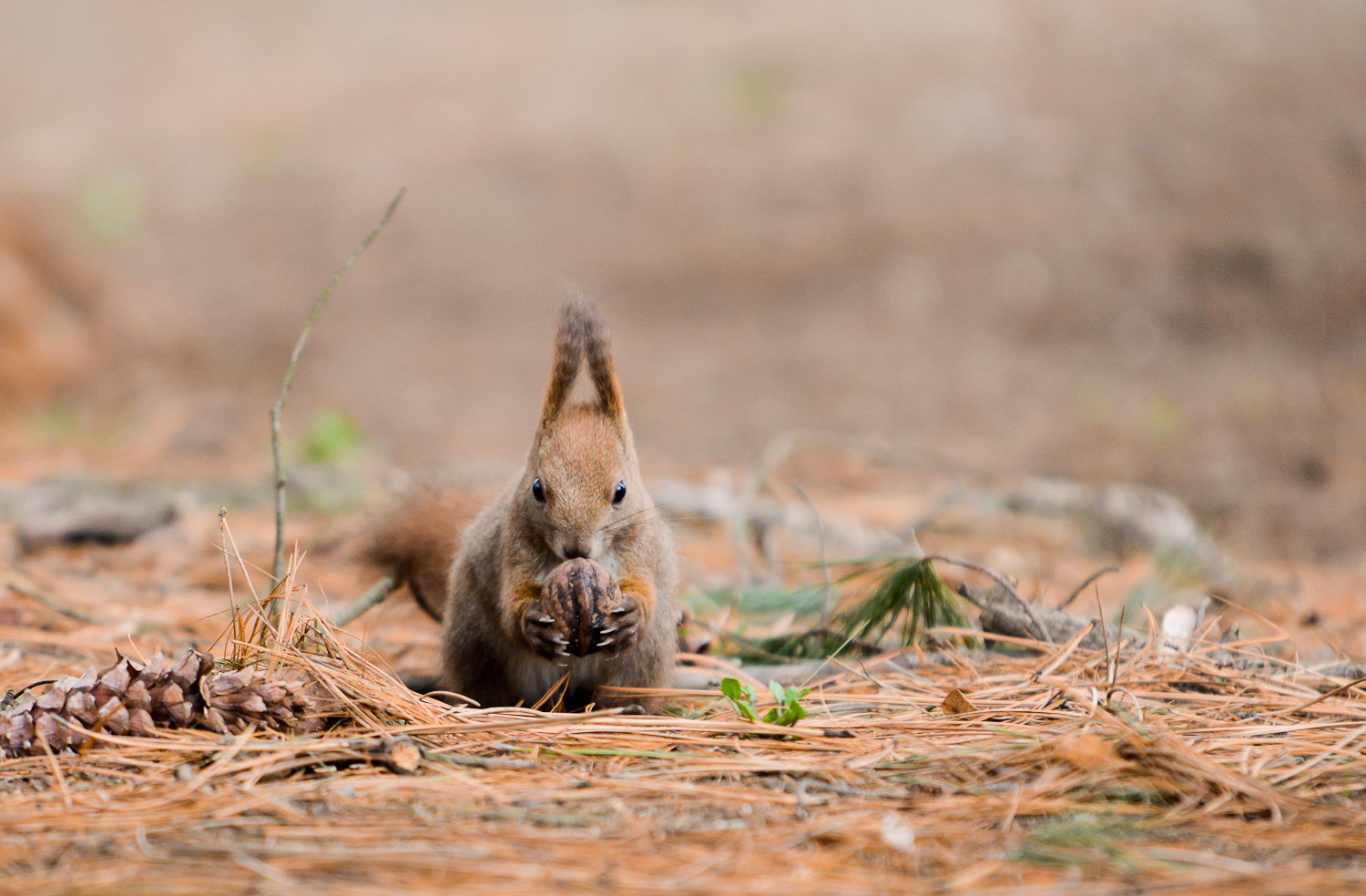 Eu aveam o țintă exactă. Fotografiasem anul trecut prin octombrie veverițele din Herăstrău cu un aparat mirrorless, un Olympus OM-D și obiectivul 14-150mm, dar eram curios parcă să văd rezultatele pe care le puteam obține și cu un D-SLR cu un teleobiectiv dedicat situațiilor precum aceasta.