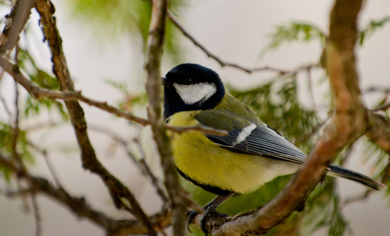Apoi, în timp ce le fotografiam pe ele, în dreapta mea, pe o creangă, s-a așezat un pițigoi care mă privea și care parcă aștepta să fie fotografiat. Și a fost surprins în câteva cadre.