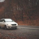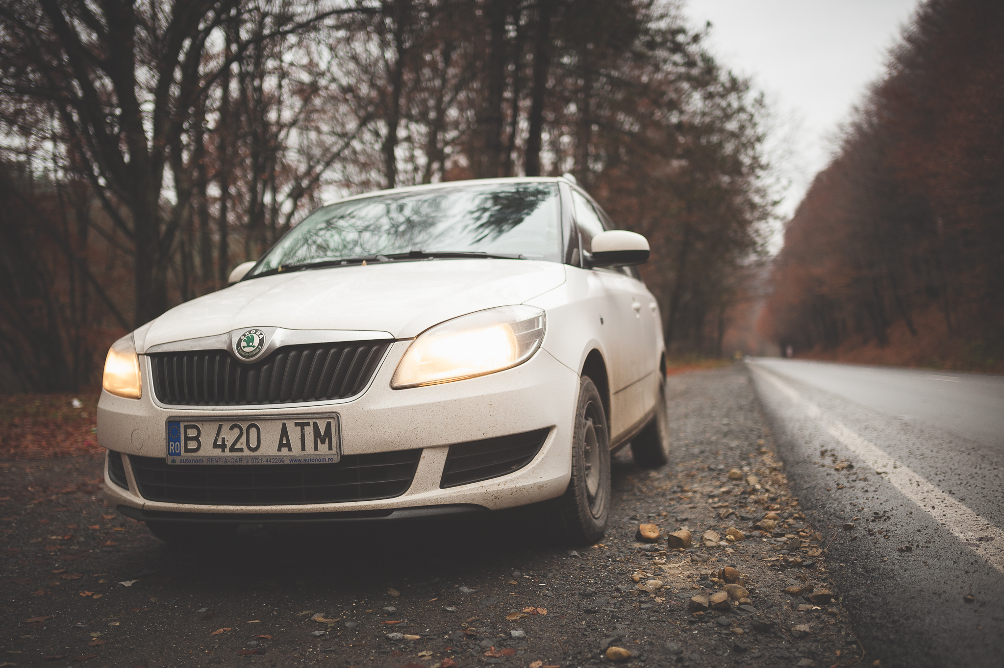 Eu am făcut aproape 1.000 de kilometri weekend-ul trecut cu o Skoda Fabia care s-a comportat exemplar. Mică, fâșneață și cu un consum mic (medie de 5,2% cu 100km făcuți în București și alte câteva sute făcute pe drumuri de munte), mașina a fost perechea potrivită. O puteți vedea în câteva fototgrafii mai jos. Din păcate a avut parte de-o vreme urâtă și-a fost tot timpul murdară, n-am reușit s-o păstrez curată mai mult de câteva minute după ieșirea din spălătorie.
