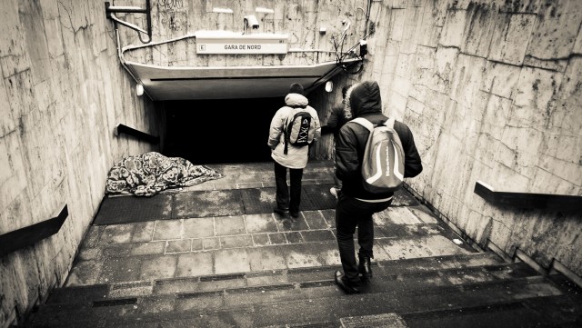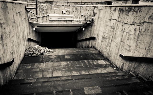 Ieri, ieșind de la metro la Gara de Nord, în spre Polizu, am văzut ceea ce puteți regăsi în cele două fotografii care urmează. Nu am văzut niciun chip, însă am văzut cum de sub acea pătura se mișca cineva și, probabil, tremura de frig. Din păcate nu am avut cum să îi aflu povestea, dar ceea ce am aflat este că situații precum acestea au început să devină banale.