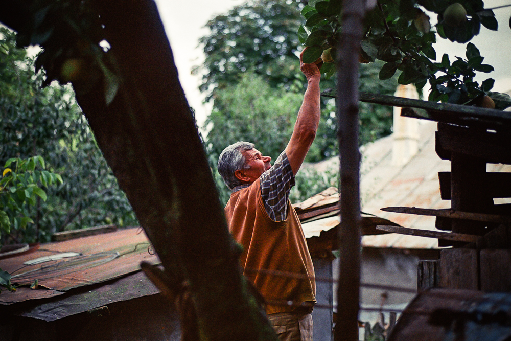 Aici sunt bunicii din partea mamei, Elena și Gheroghe. Bunicul a fost minier timp de aproape 20 de ani. S-au mutat la țară imediat după ce a ieșit la pensie și de atunci investesc mult suflet în gospodăria pe care o au. Discutam cu ei și îmi aminteam de când eram mic și mergeam cu bunicu atunci când mulgea vaca și beam repede o cană de lapte cald, proaspăt. Și apoi bunica îmi făcea lapte cu tăieței. Și iarna, în miezul nopții, îl rugam pe bunicul meu să ieșim să ne dăm cu sania pe uliță. Și.. și… și..
