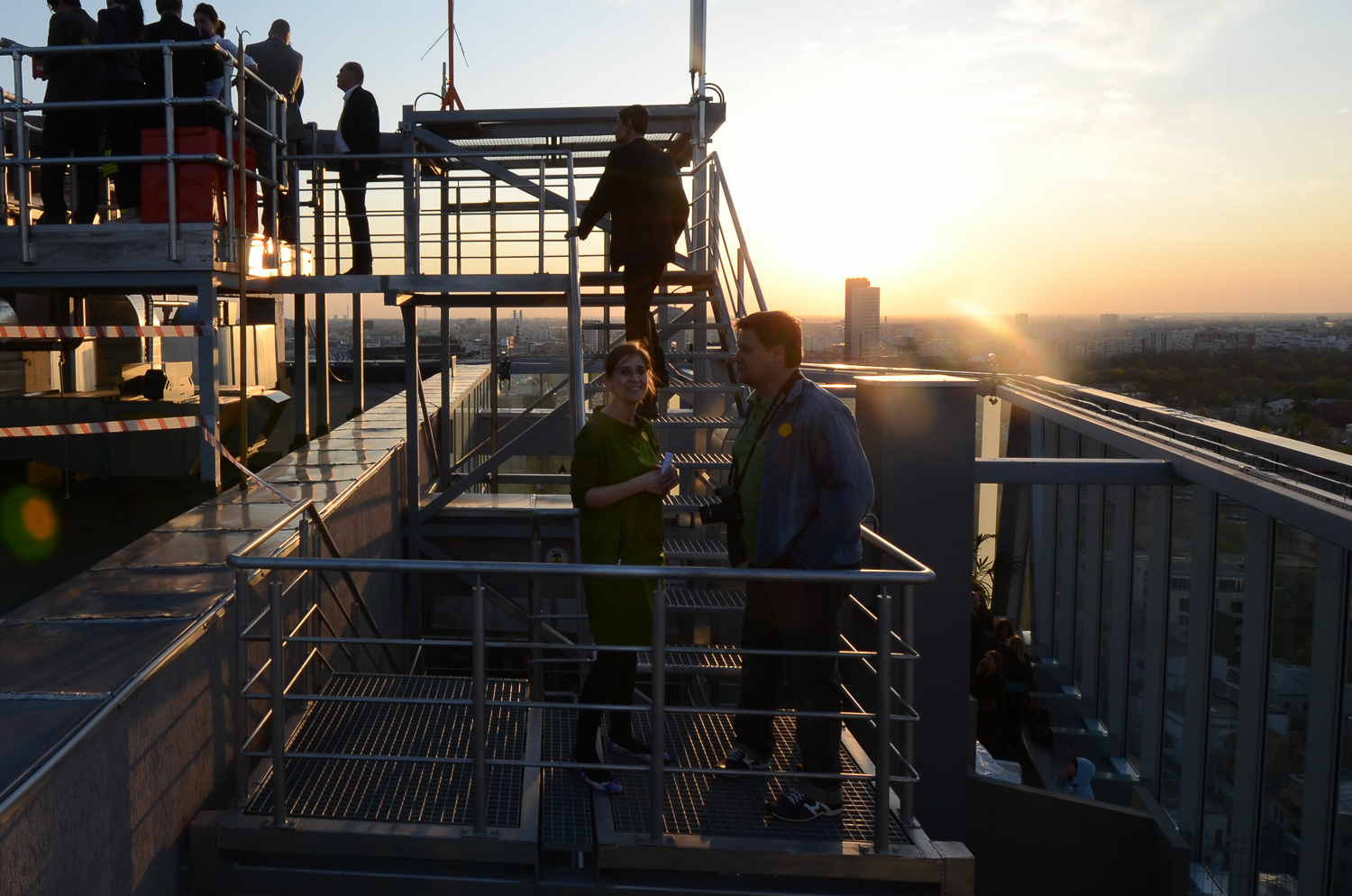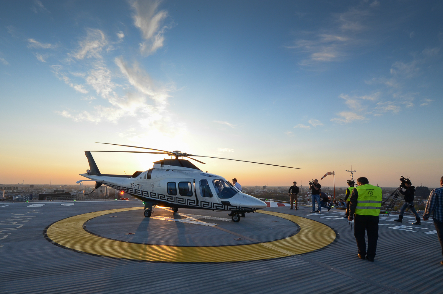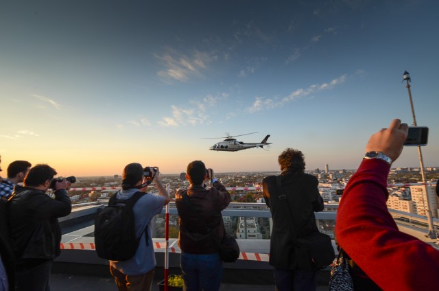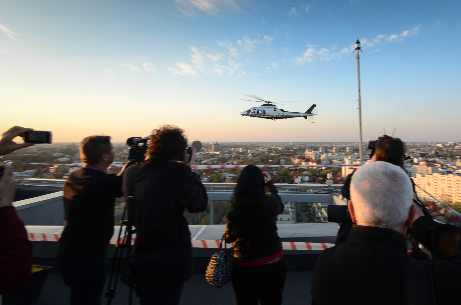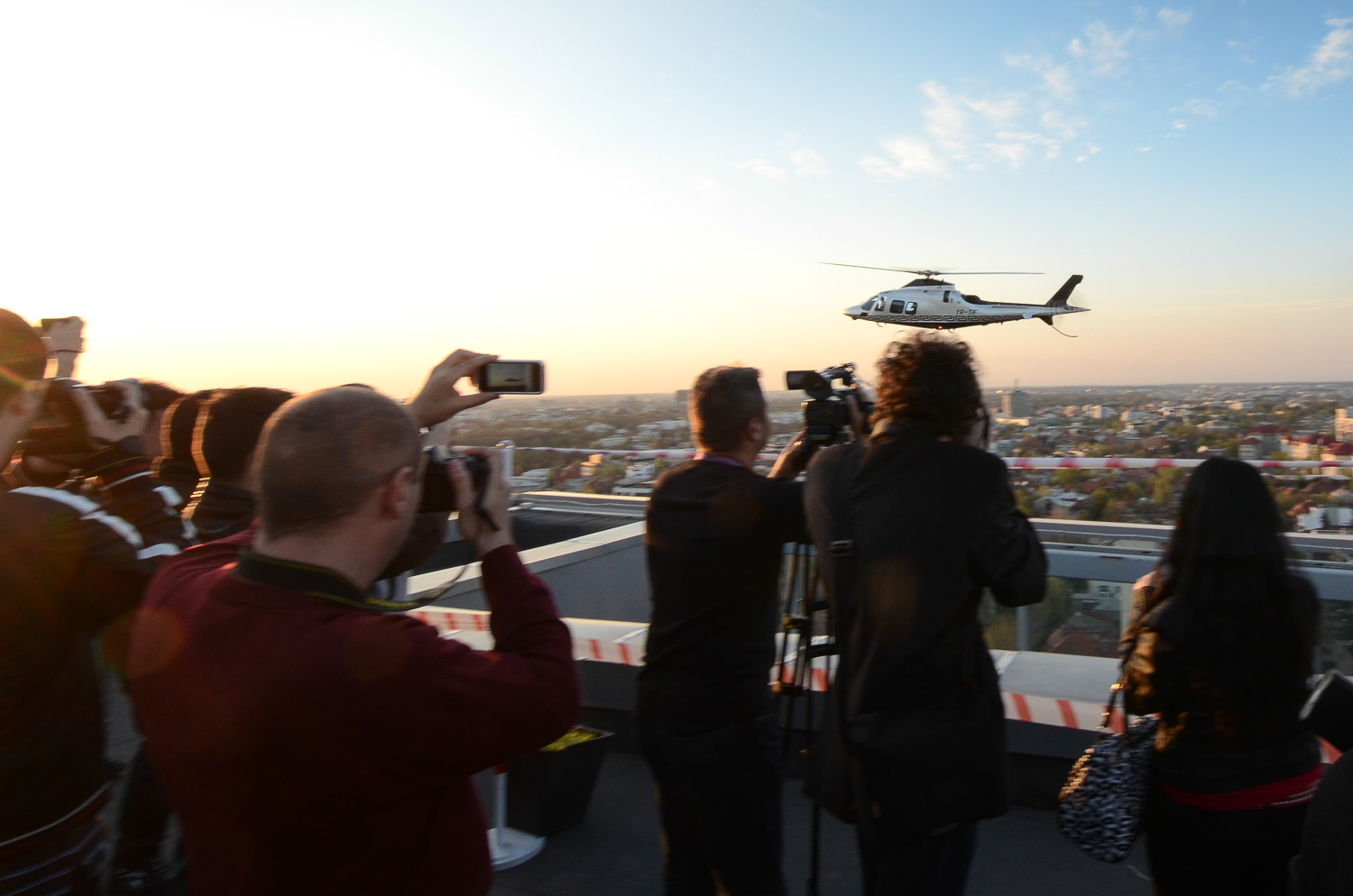 Era puțin după ora 18 când ajunsesem la etajul a 15-le al clădirii Crystal Tower, loc în care avea să sosească surpriza serii. Evenimentul, desfășurat – metaforic – pe durata unui apus minunat, a fost unul gândit într-un mod mai diferit și extrem de interesant. Eram cu toții și așteptam începerea programului, moment în care am fost anunțați că în câteva minute vom urca pe heliport loc în care – ați ghicit – avea să aterizeze un elicopter care să ne aducă noul model al companiei Samsung, Galaxy S4.