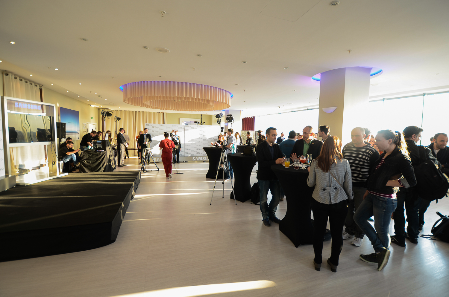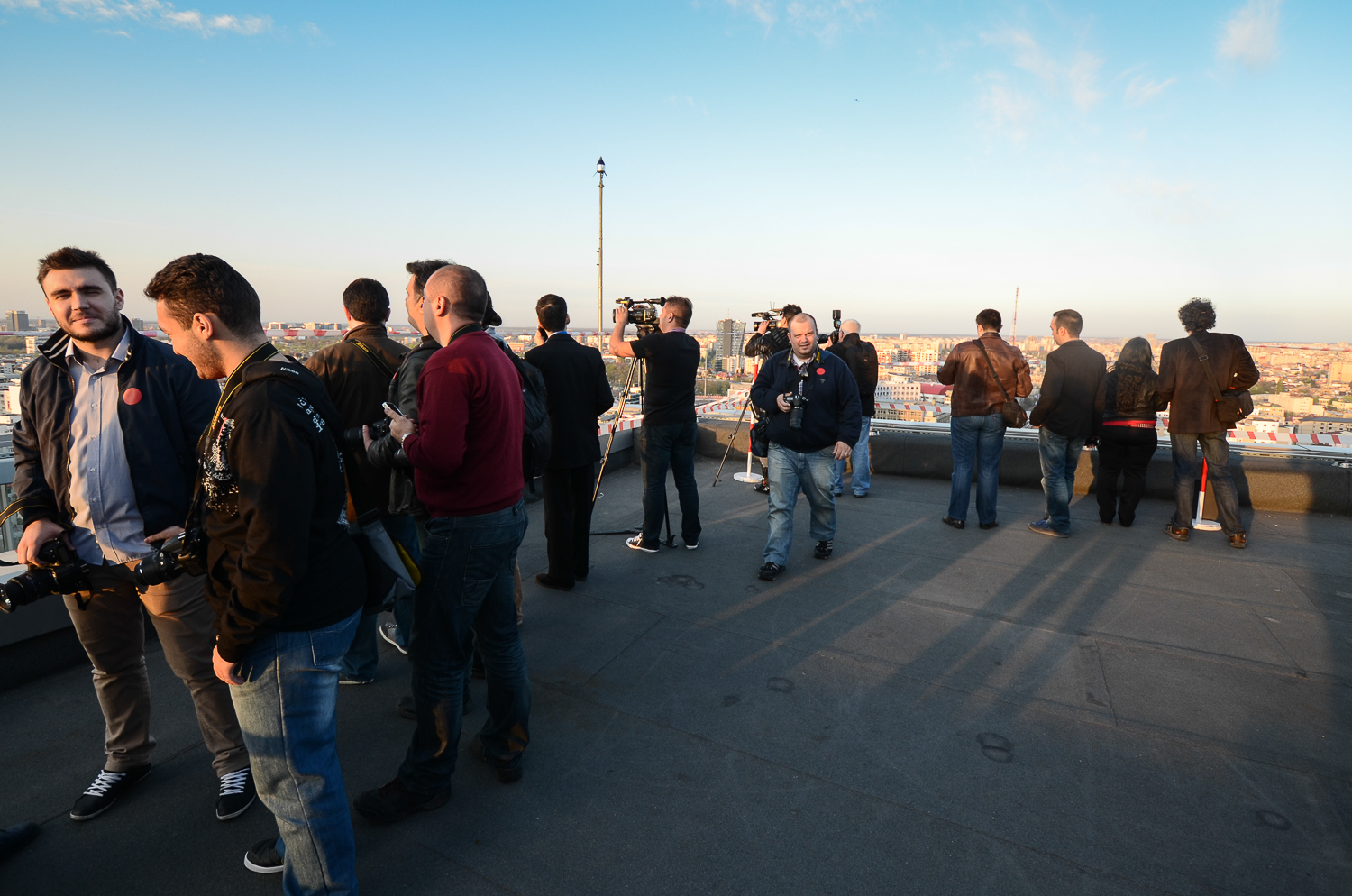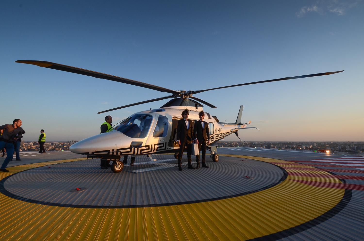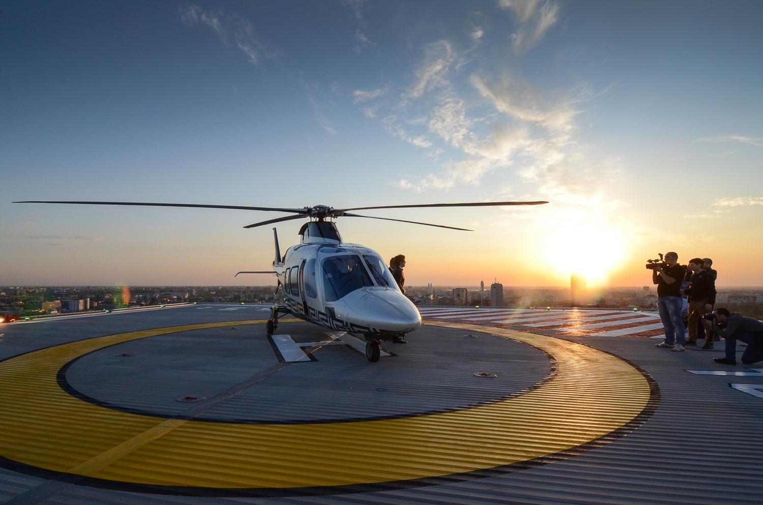 Era puțin după ora 18 când ajunsesem la etajul a 15-le al clădirii Crystal Tower, loc în care avea să sosească surpriza serii. Evenimentul, desfășurat – metaforic – pe durata unui apus minunat, a fost unul gândit într-un mod mai diferit și extrem de interesant. Eram cu toții și așteptam începerea programului, moment în care am fost anunțați că în câteva minute vom urca pe heliport loc în care – ați ghicit – avea să aterizeze un elicopter care să ne aducă noul model al companiei Samsung, Galaxy S4.