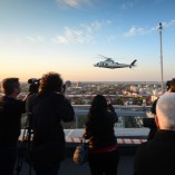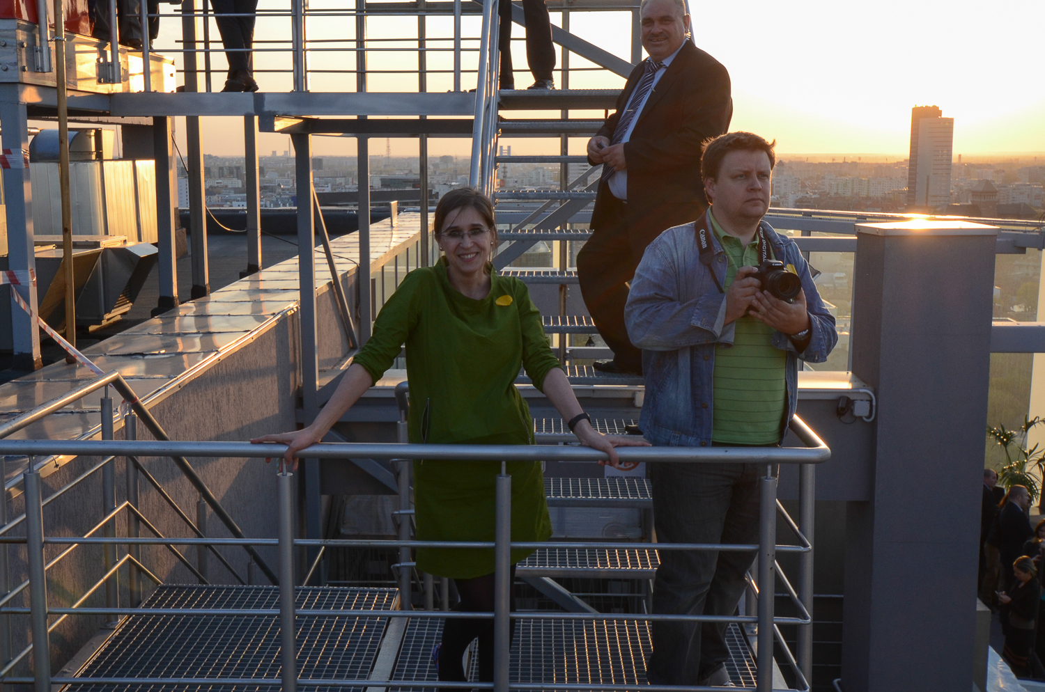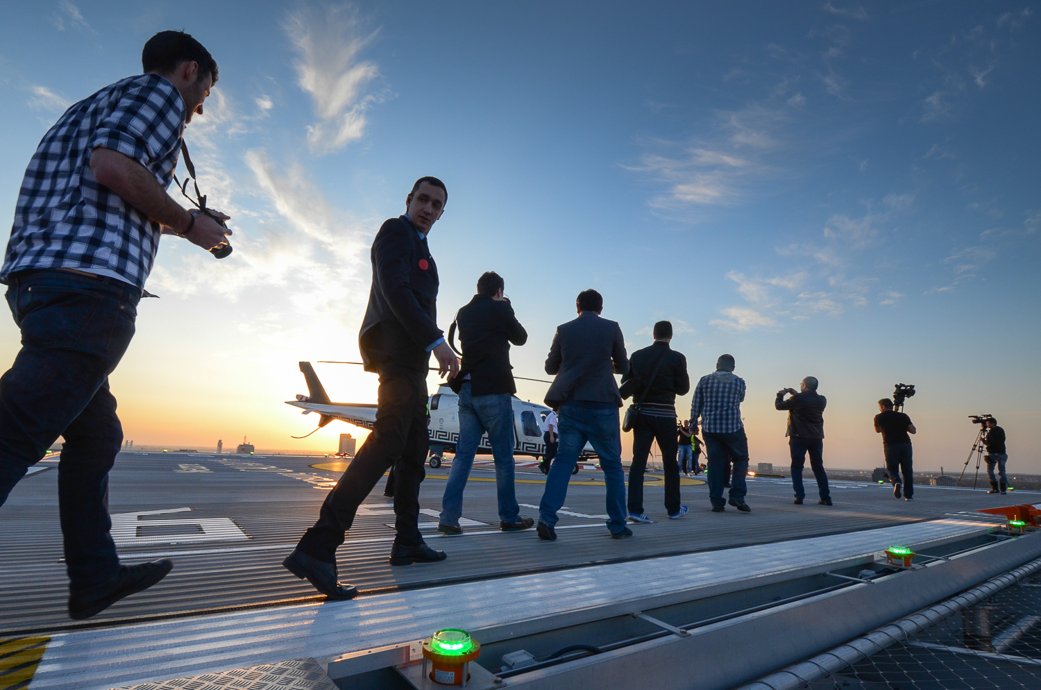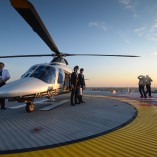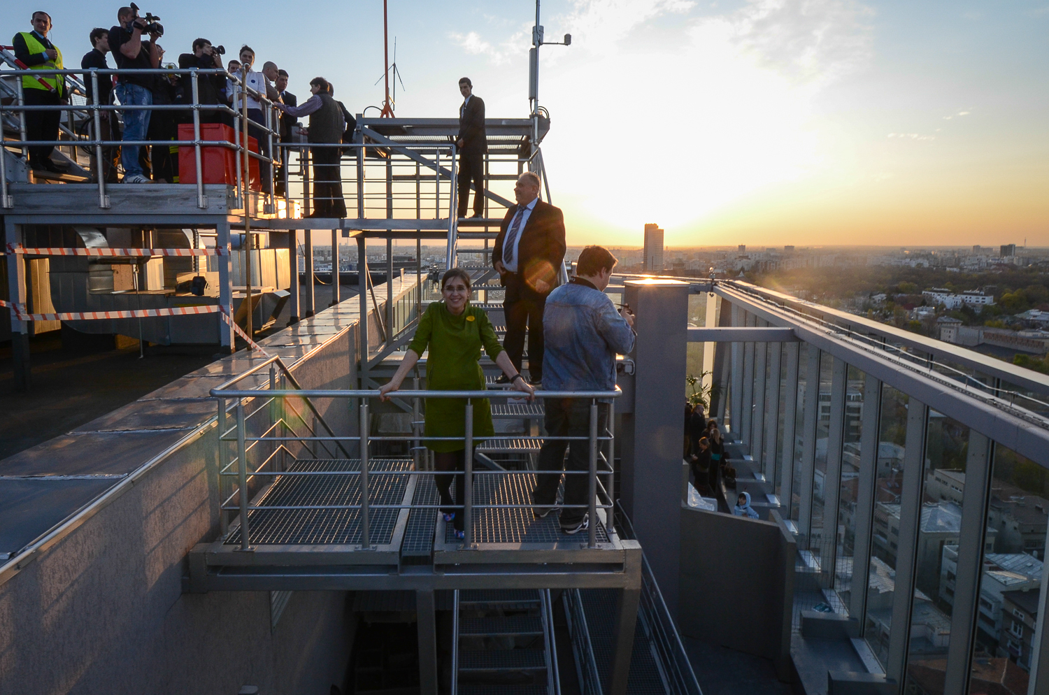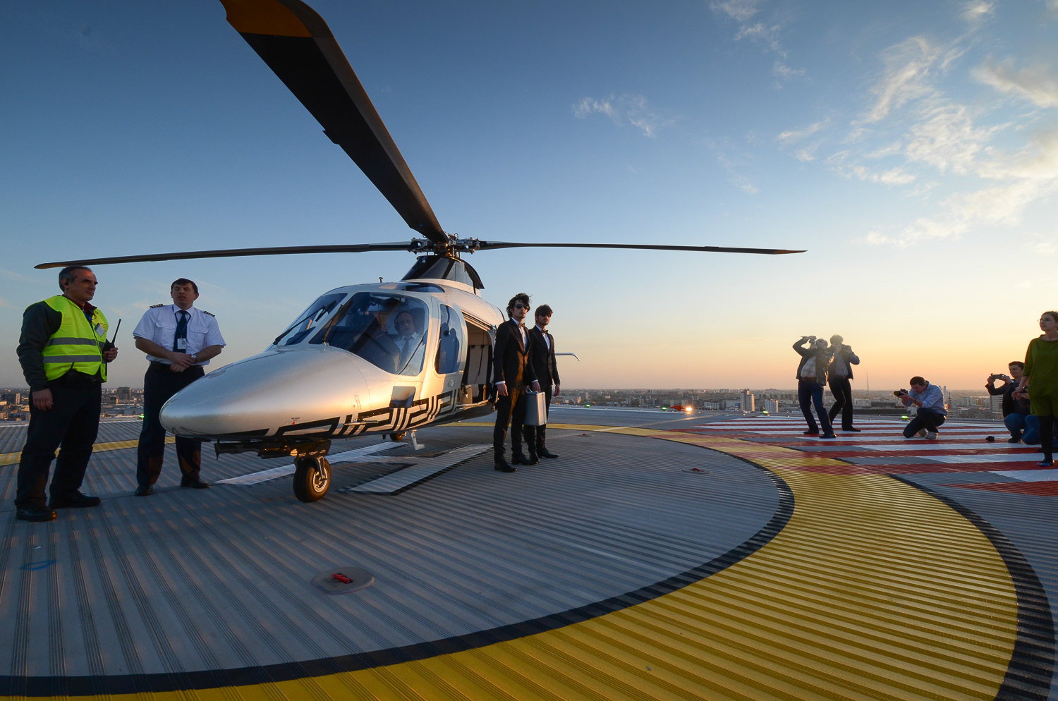 Era puțin după ora 18 când ajunsesem la etajul a 15-le al clădirii Crystal Tower, loc în care avea să sosească surpriza serii. Evenimentul, desfășurat – metaforic – pe durata unui apus minunat, a fost unul gândit într-un mod mai diferit și extrem de interesant. Eram cu toții și așteptam începerea programului, moment în care am fost anunțați că în câteva minute vom urca pe heliport loc în care – ați ghicit – avea să aterizeze un elicopter care să ne aducă noul model al companiei Samsung, Galaxy S4.