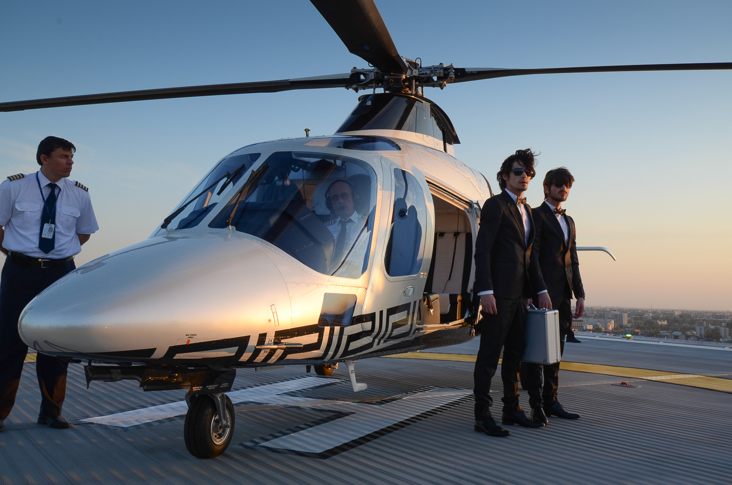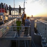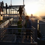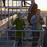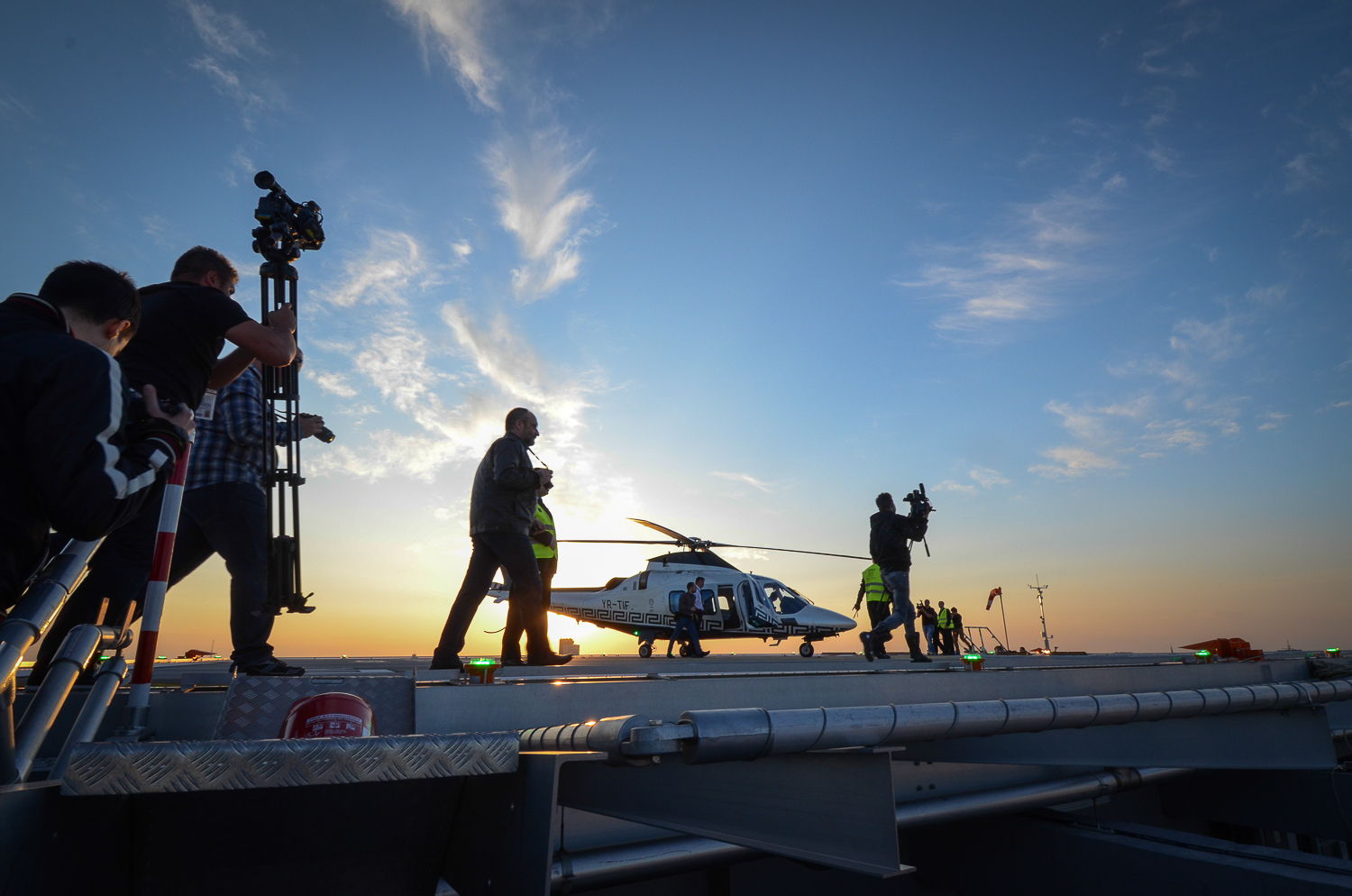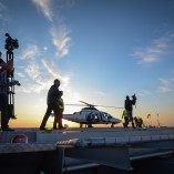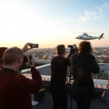 Și elicopterul a început să survoleze turnul, dându-ne posibilitatea de a-l fotografia din toate unghiurile posibile. Având și un apus superb în fața noastră, am reușit să obținem câteva cadre cel puțin interesante. Cam așa eram cu toții în timp ce elicopterul se învârtea în jurul nostru.