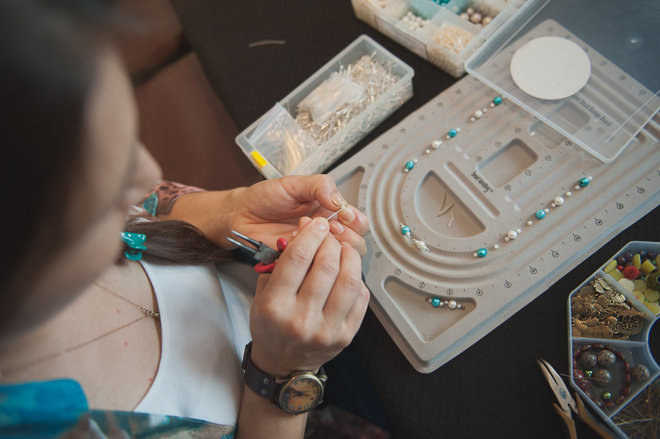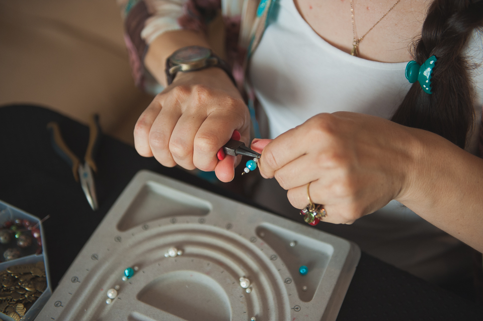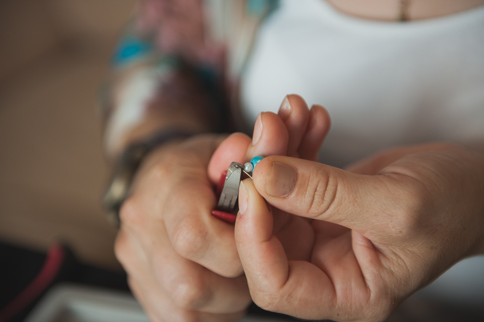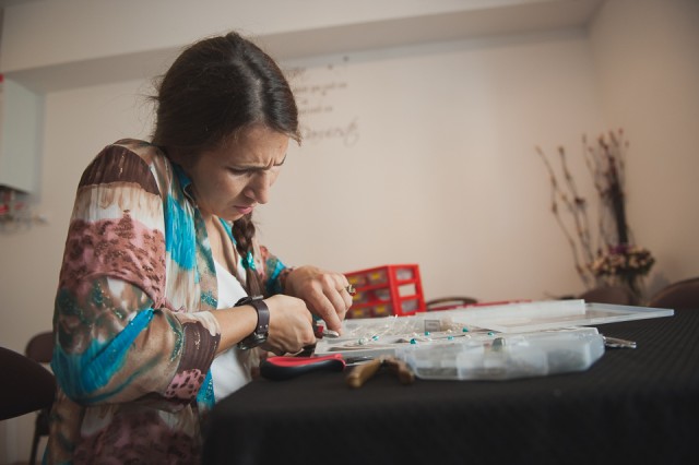 După ce i-am dus din nou pe juniori la Casa Agar, am plecat alături de Maria către apartamentul unde lucrează. Unde creează minunatele bijuterii pe care le puteți găsi și comanda de pe Touched Collection. Am stat două ore alături de ea în timp ce făcea un colier tare, tare frumos. În astea două ore m-am tot întrebat cum de are atât de multă răbdare, putere și voință. Probabil răspunsul stă în centrul sentimentelor ei. Acolo unde se află cele 5 suflete pe care le-ați văzut mai sus.