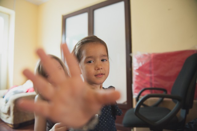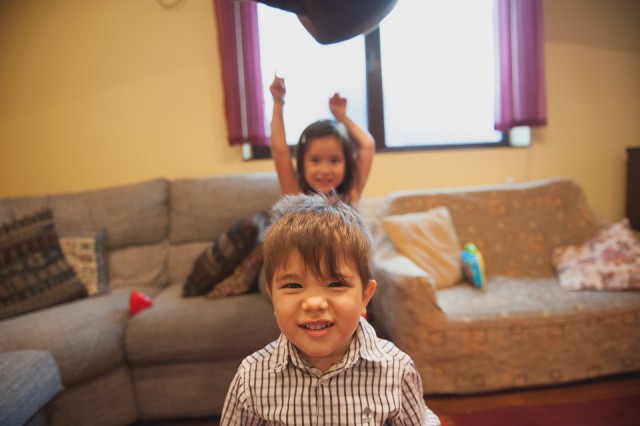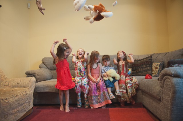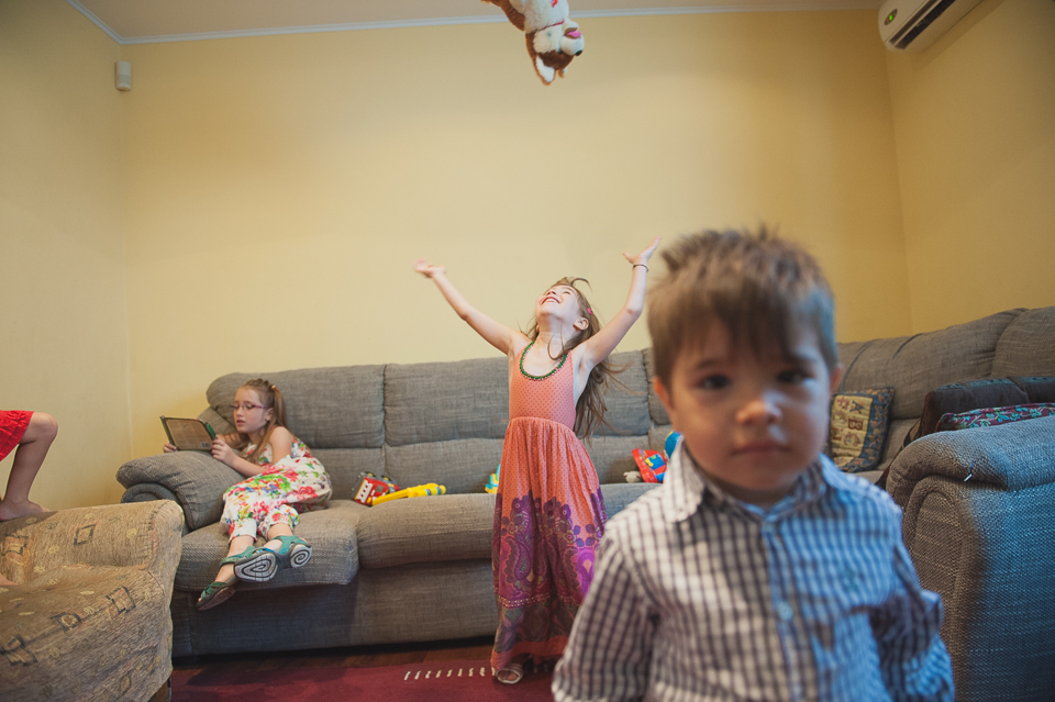 Puțin mirată, Maria a ieșit din cameră lăsându-ne doar pe mine, cei cinci copii și aparatul de fotografiat. Am rugat-o pe Maria să iasă din cameră gândindu-mă că așa copiii se vor putea juca după cum vor fără să fie supravegheați. Și a funcționat tare bine.