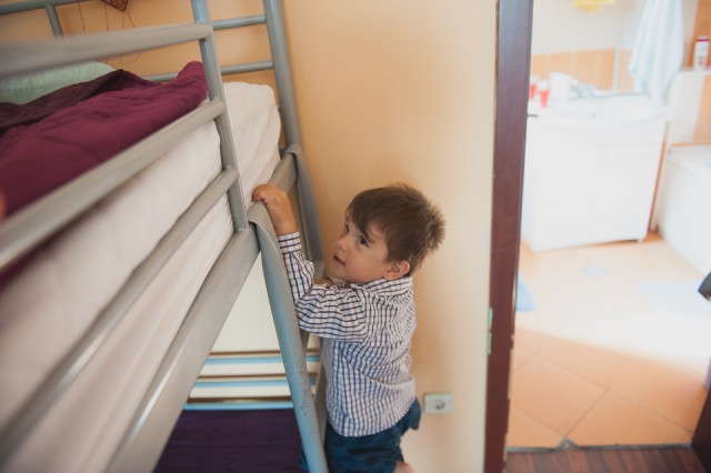 Coborând din cameră ne-am oprit să facem o fotografie de grup pe scări. Nicolas, juniorul de 2 ani, n-avea nicicum răbdare. Știa că urma să mergem în parc și doar la asta se gândea.