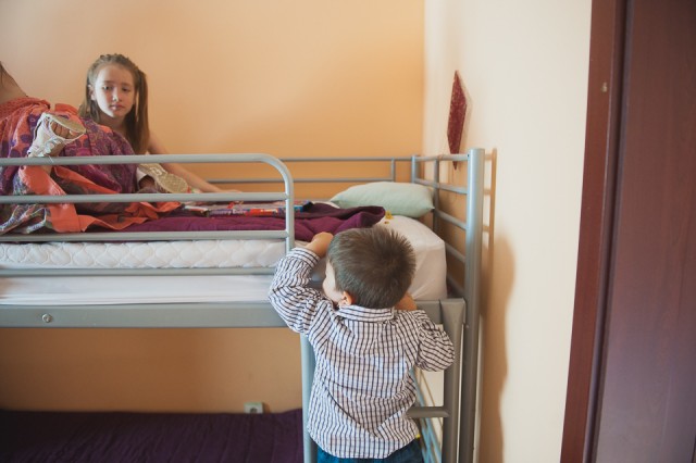 Apoi din camera în care am făcut aceste fotografii am urcat în cea în care au stat ei prima oară când au ajuns în Casa Agar. Tare fericiți mai erau juniorii. Au început să sară pe paturile în care au dormit o perioadă bună de timp și să-mi povestească despre cum se urcau fără să știe mama lor pe scara din dreptul pătuțurilor supraetajate.