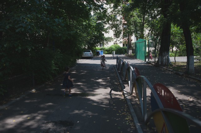 Dar înainte să ajungem în parc Laura și Natalia, cele două fetițe mai mari care merg deja la școală, au vrut să-mi arate curtea școlii lor și să verifice dacă mai e cumva deschisă. Alergau în spre școală și erau mândre foc că trecem pe acolo.