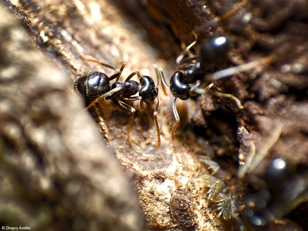 Dificultatea realizării unor fotografii cu furnici a reprezentat chiar acea provocare. În câteva zile voi publica și un clip cu imagini macro (film, nu slideshow) ale unor furnici. Va fi interesant, vă asigur! Până atunci vă las cu această nouă serie de fotografii cu povestea unor furnici! Puteți urmări seriile și pe Facebook.