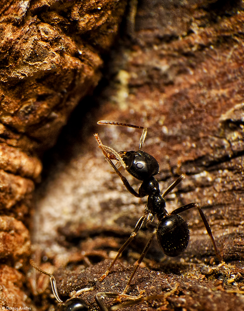 De foarte mult timp îmi doresc să fotografiez furnici, însă nu de multe ori am avut răbdarea necesară. Astăzi mi-am propus să realizez o primă serie cu povestea unor furnici. Spun de la început că nu e atât de ușor pe cât mă așteptam. Timp de două ore în care am realizat aceste fotografii nu am găsit nicio furnică liniștită, toate se mișcau în continuu, declanșarea fiind deja o loterie.