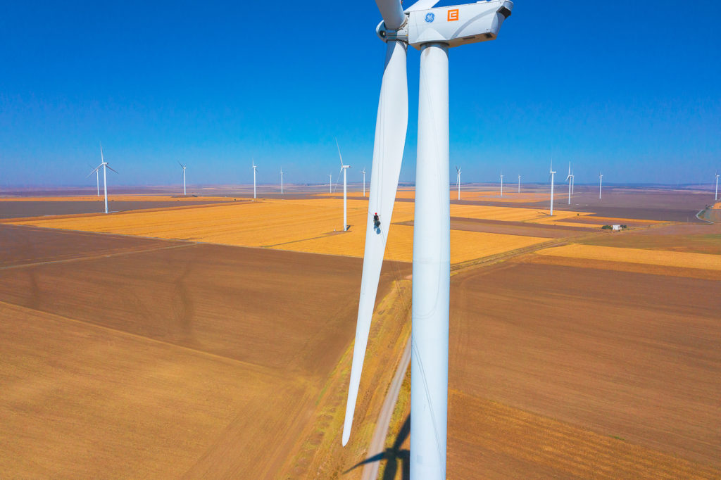 Momentul în care am ajuns pe nacela turbinei eoliene a fost unul pe care nu-l voi uita prea curând. Eram la 100 de metri altitudine, în bătaia unui vânt care începea să se întețească, în mijlocul altor zeci de turbine eoliene care „munceau de zor”, când soarele încă nici nu era pe cer.