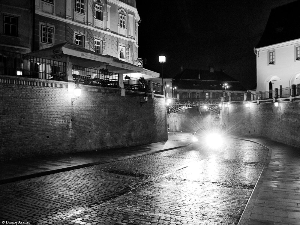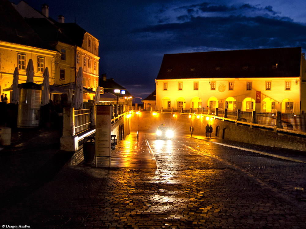 Pe la ora 18 am ajuns în Sibiu, orașul care, fără să exagerăm, în cele trei localuri în care am fost am avut probleme cu servirea. Fie ni s-a lăsat scrumiera umplută, fie i s-a trântit telefonul lui Alex, fie a intrat chelnerul peste mine la toaletă, fie aveau meniu de formă și nu aveau nimic din ce ceream, fie ni s-a vorbit urât. Ei, asta e, a trecut, însă nu au fost tocmai orele noastre cele mai bune.